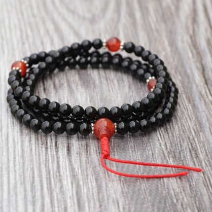 Black Onyx Stone Japa Mala with Carnelian Spacer