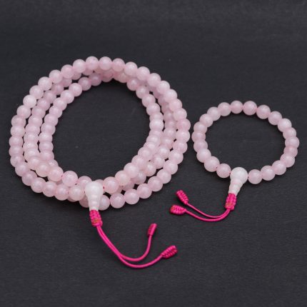 Rose Quartz Stone Prayer Necklace and Bracelet Set