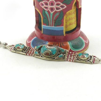 Turquoise & Coral Inlaid Stone Bracelet