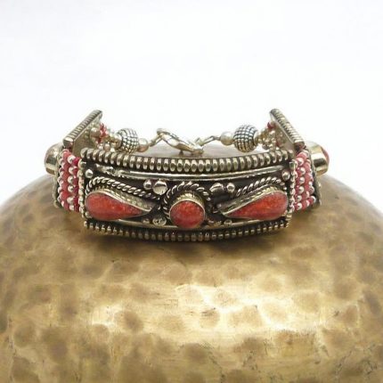Coral Inlaid Stone Bracelet