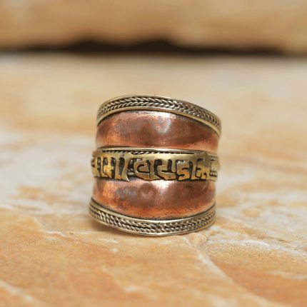 Newari Mantra Carved Copper & Brass Finger Ring