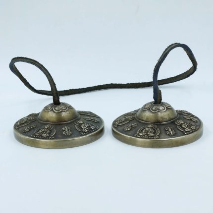 Auspicious Symbols Carved Tingsha Brass Bells