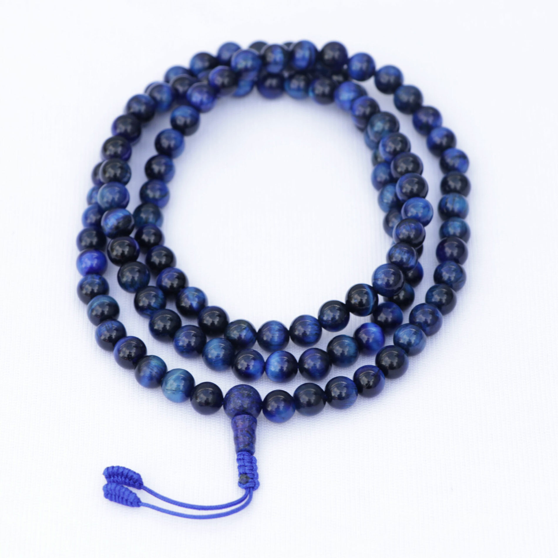 Embrace the flawless 108 beads blue tiger eye stone Japa mala & wrist mala/bracelet pair from Lotus Handicrafts (Lotus Mala).