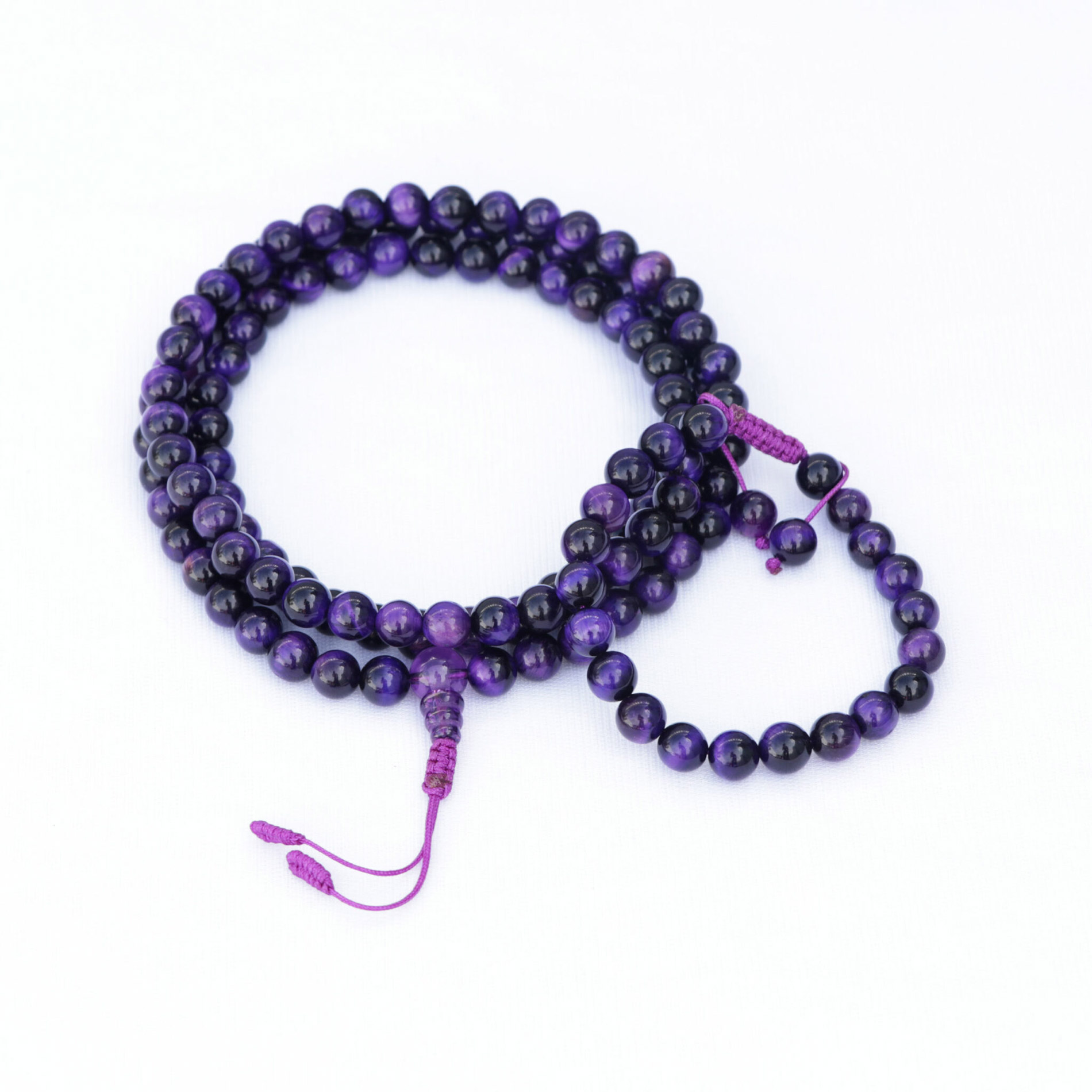 108 Beads Purple Tiger Eye Stone Japa Mala & Wrist Mala/ Bracelet Pair