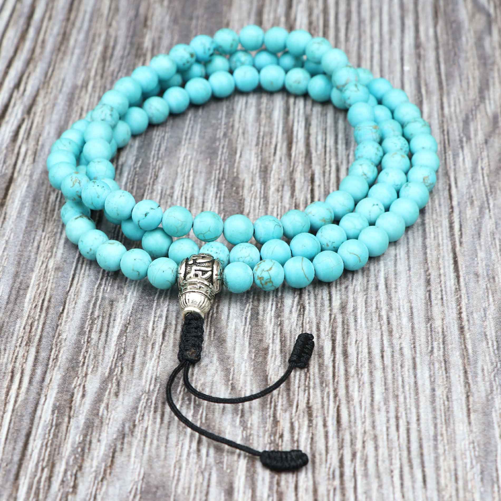 Benefits of 108 Simulated Matte Turquoise Stone Prayer Mala Beads