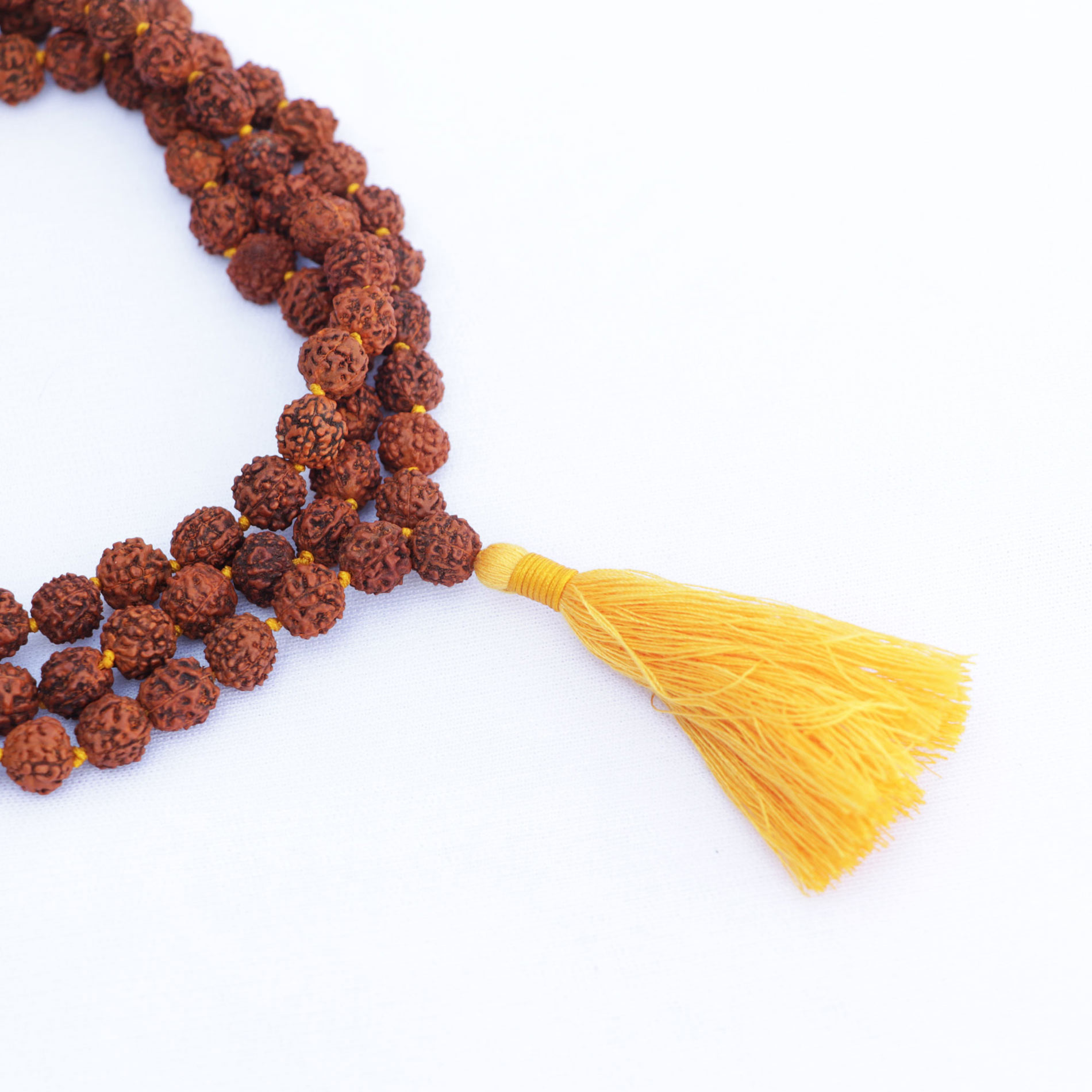 Benefits of 5-Faced Hand-Knotted Rudraksha Seed Japa Mala with Yellow Tassel