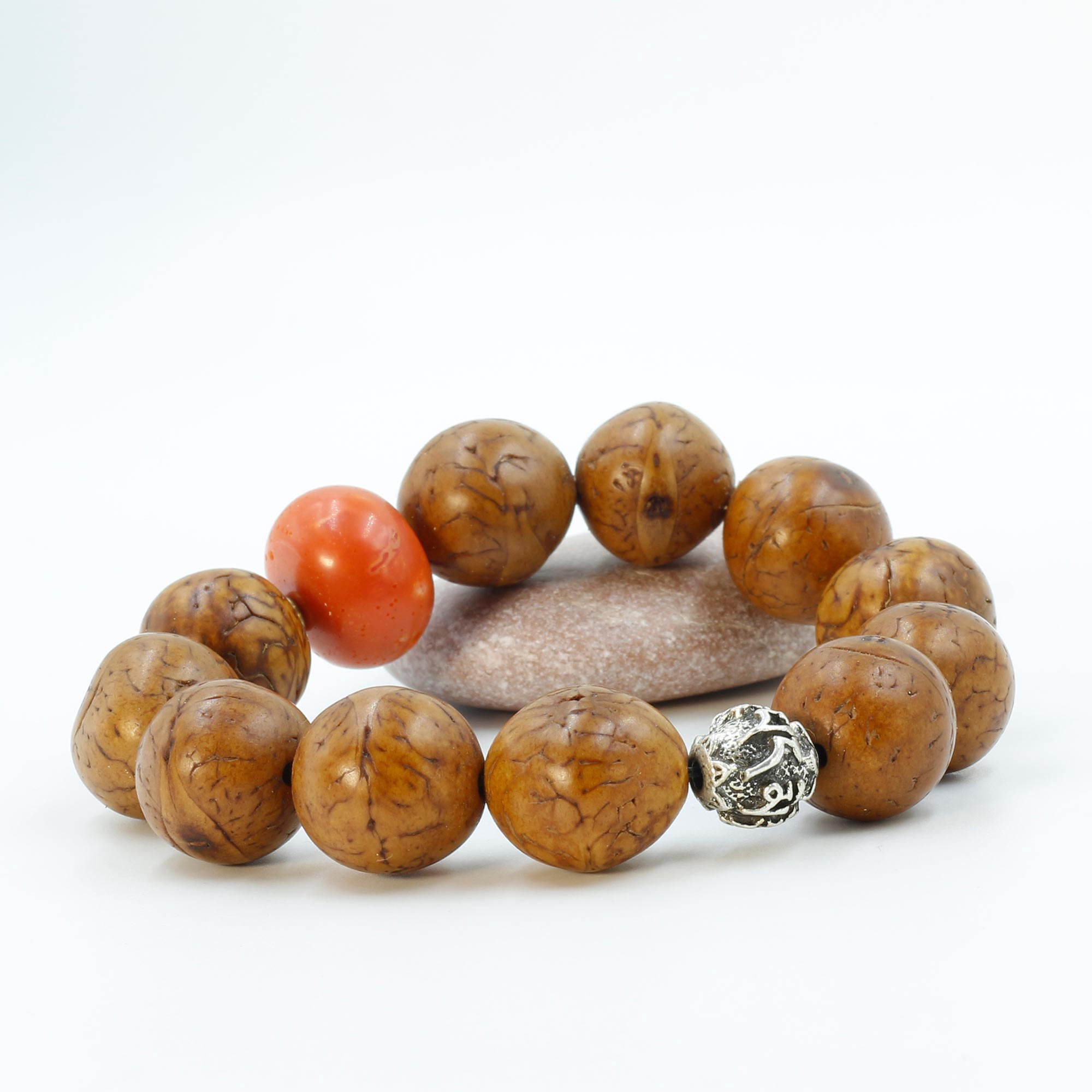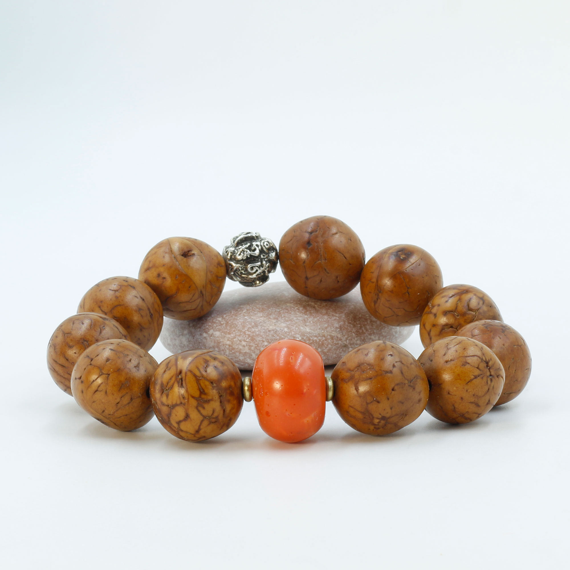 Materials: Antique Bodhi Seed, Coral Stone, Metal Bead