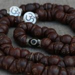 Embrace the flawless Antique One Eye Nepali Bodhi Seed Yoga Mala with Om Spacer at an unbeatable price from Lotus Mala (Lotus Handicrafts).