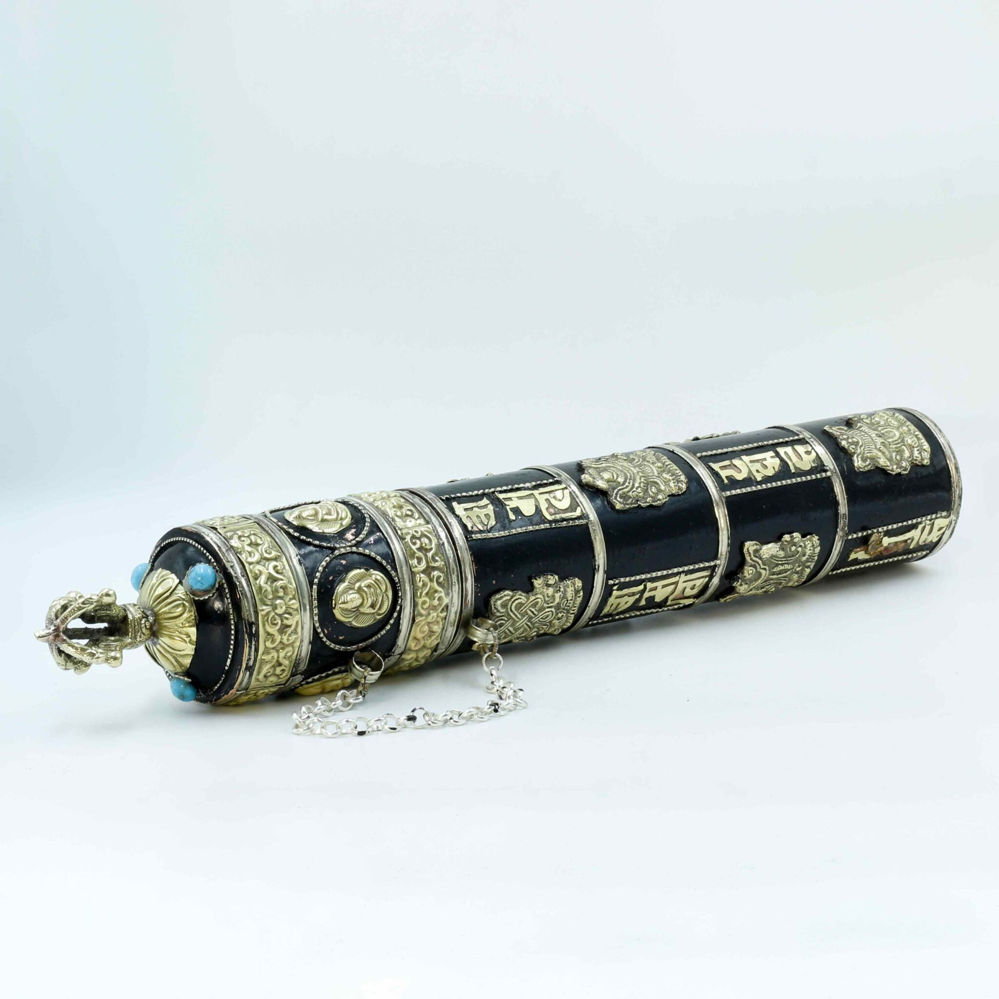 - Features a sculpted Vajra on top, traditionally associated with spiritual power, clarity, and protection