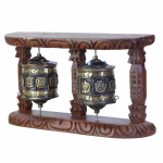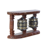 The Brown Eight Auspicious Symbol Double Wall Prayer Wheel is a traditional Himalayan ritual piece designed for spiritual spaces. Finished in a rich brown tone, it carries a warm and earthy aesthetic suitable for home altars or meditation rooms. The prayer wheel features the Eight Auspicious Symbols, which represent blessings, harmony, and spiritual prosperity. Its double wall design allows mantras to be enclosed securely within the wheel. When spun, the wheel is traditionally believed to release positive energy and merit into the surroundings. The sturdy construction ensures smooth rotation and long-lasting use. It is designed to be mounted on a wall, making it both functional and space-saving. The detailed symbolic artwork reflects authentic Tibetan and Nepalese craftsmanship. This prayer wheel serves as both a devotional object and a decorative element. Overall, it embodies spiritual meaning, cultural heritage, and refined craftsmanship.