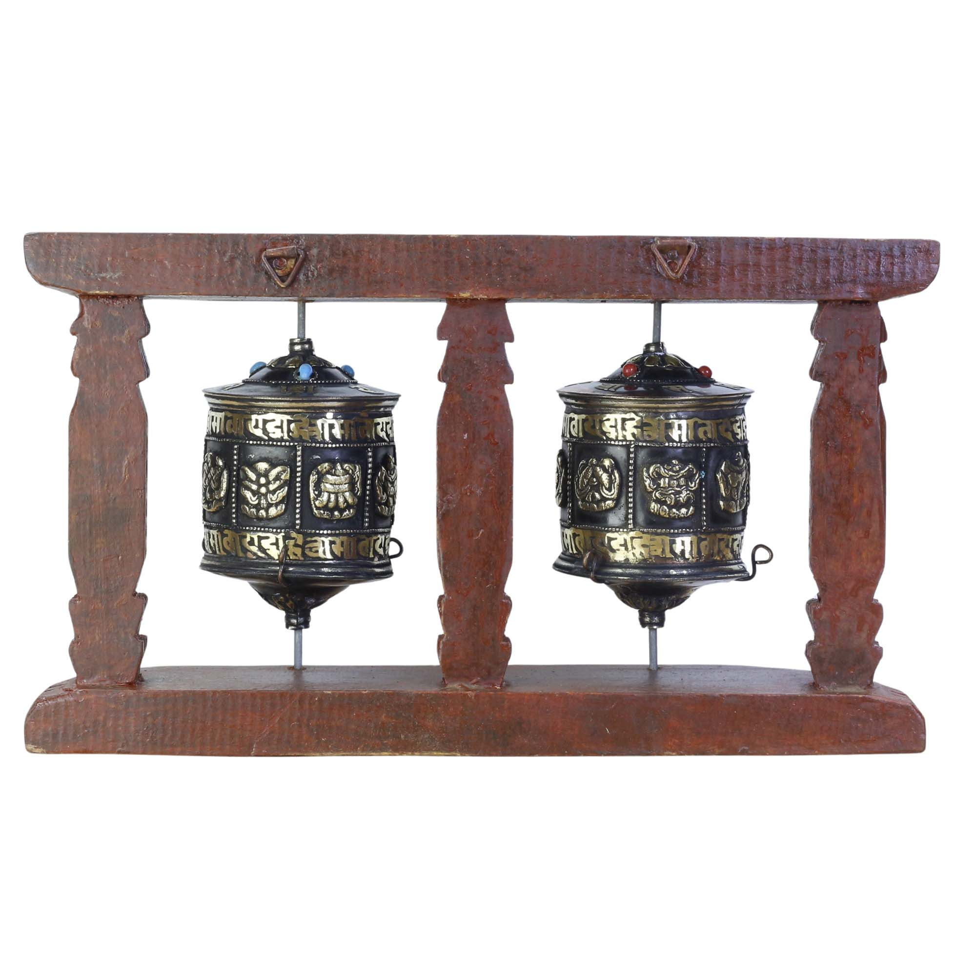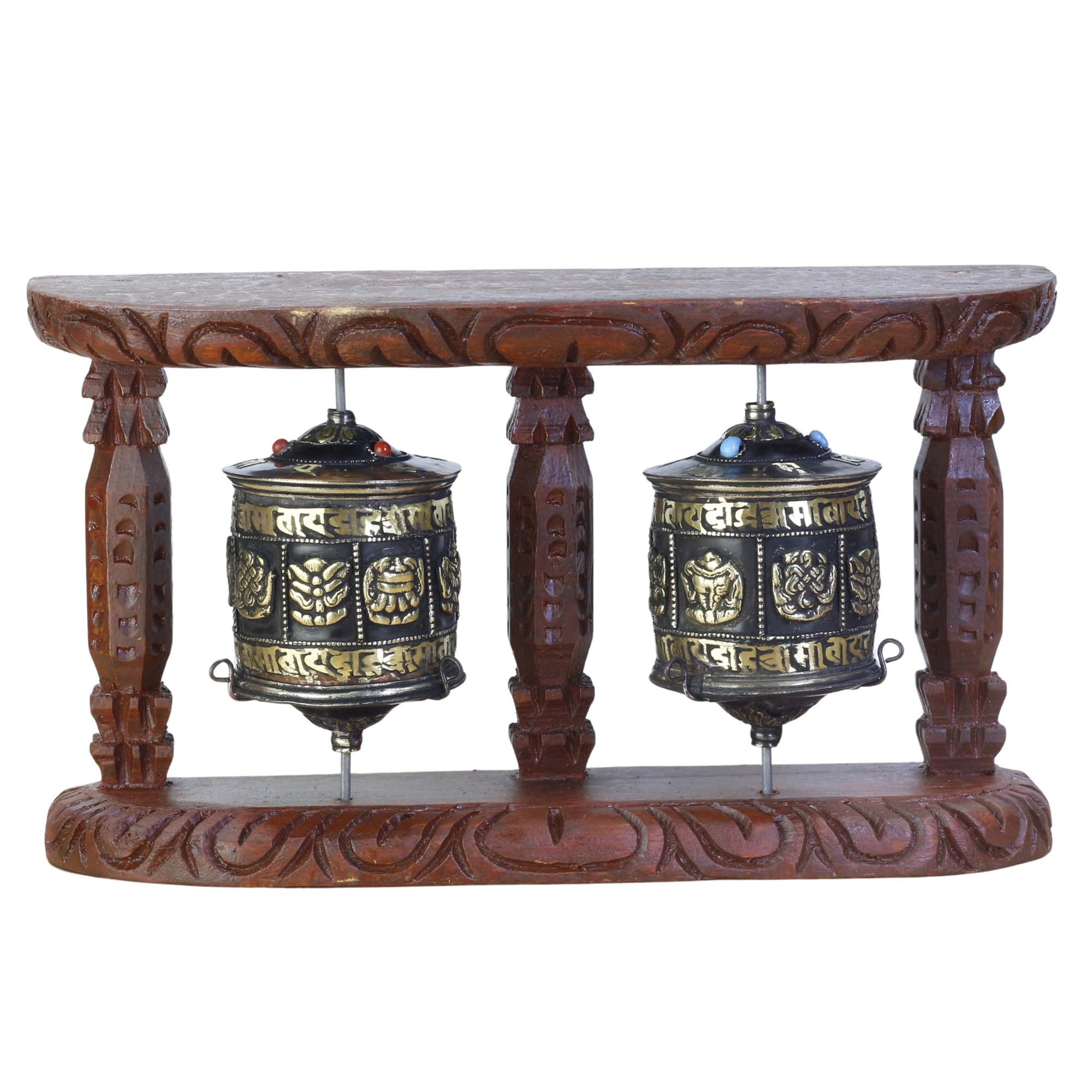 Invest in the finest Brown Eight Auspicious Symbol Double Wall Prayer Wheel from Lotus Mala (Lotus Handicrafts).