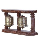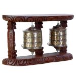 A Double Wall Prayer Wheel contains layers of sacred mantras and spiritual symbols within its inner chamber, while the outer surface is inscribed with powerful mantra symbols. With each clockwise turn—whether by hand or gentle air movement—it is believed that the blessings and positive intentions of the enclosed mantras are released into the environment. This sacred motion is thought to purify negative energies, promote compassion, and cultivate peace.