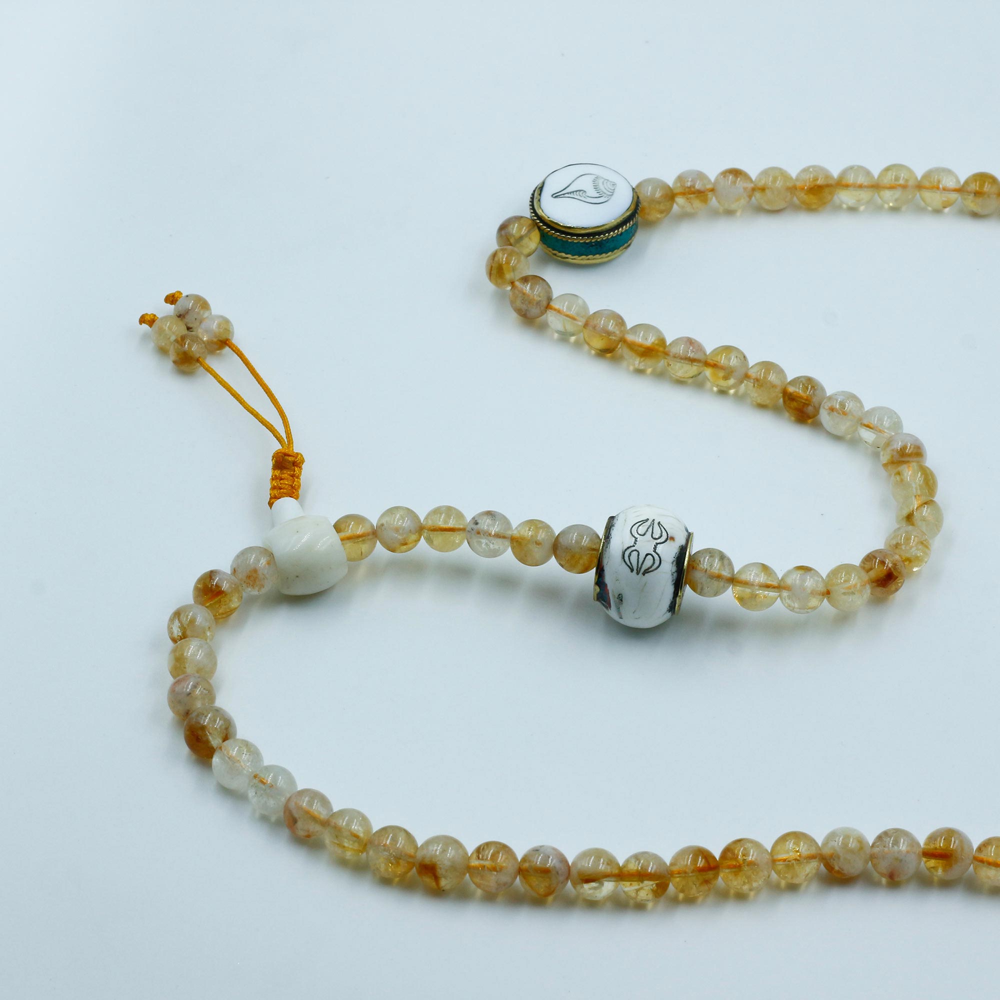 Select the premier Citrine Stone with Conch & Dorjee Symbol on Conch Shell Bead Mala at an unbeatable price from Lotus Mala (Lotus Handicrafts).