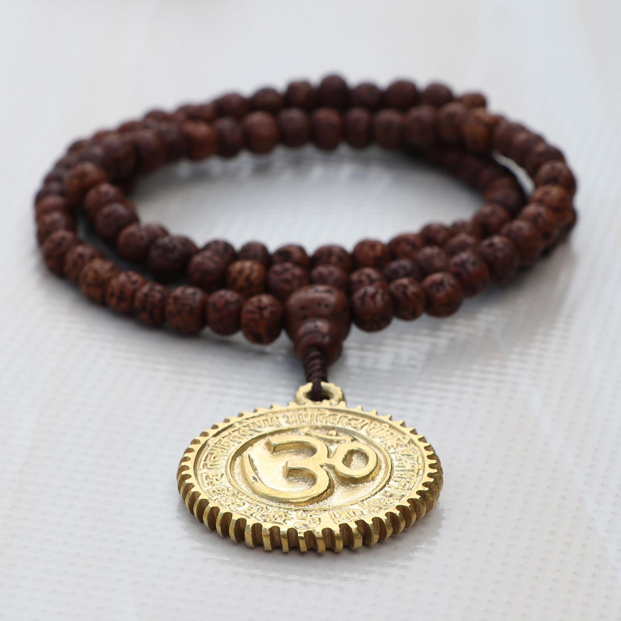 Select the premium Dark Brown Hindu Om Rudraksha Bead Japa Mala at an unbeatable price from Lotus Mala (Lotus Handicrafts).