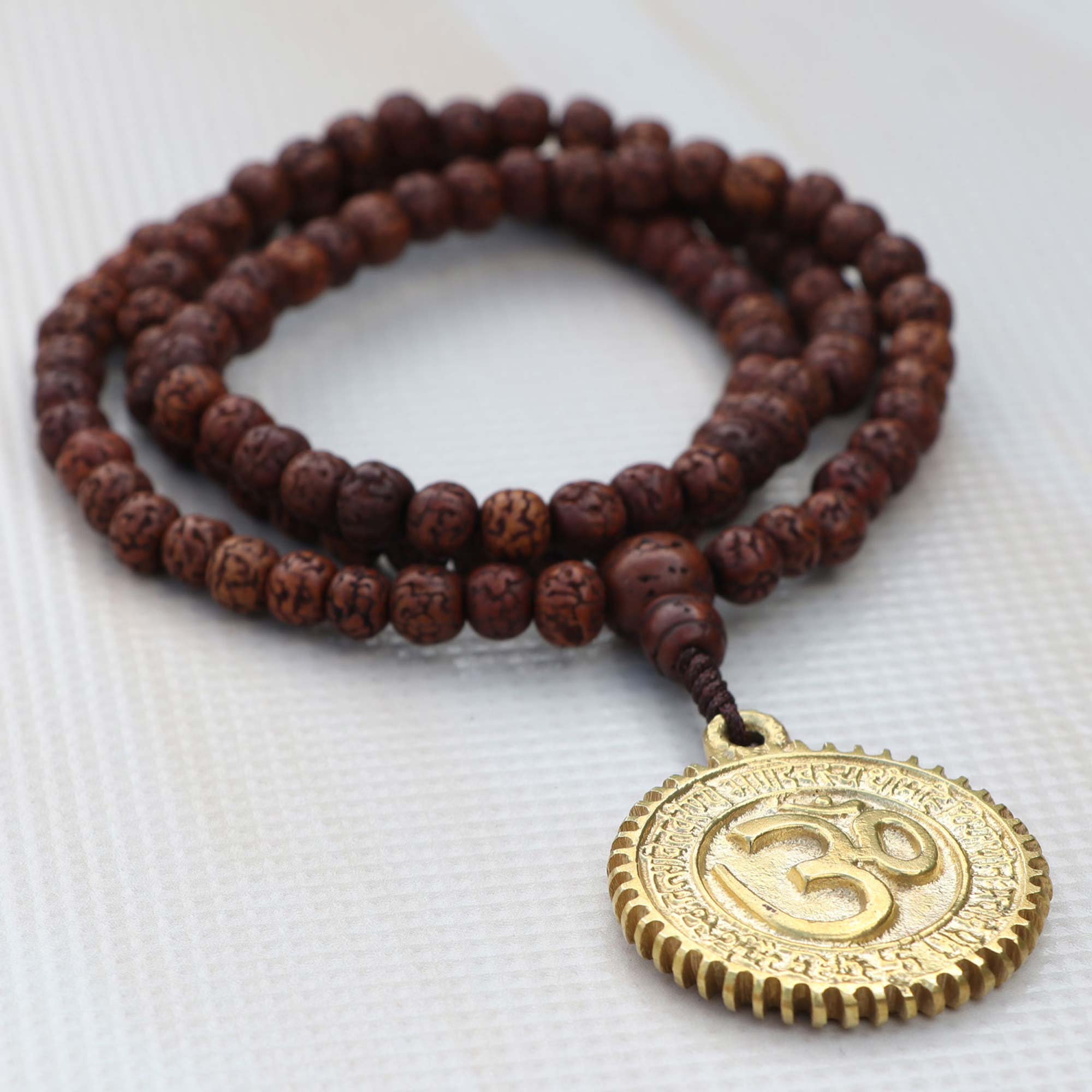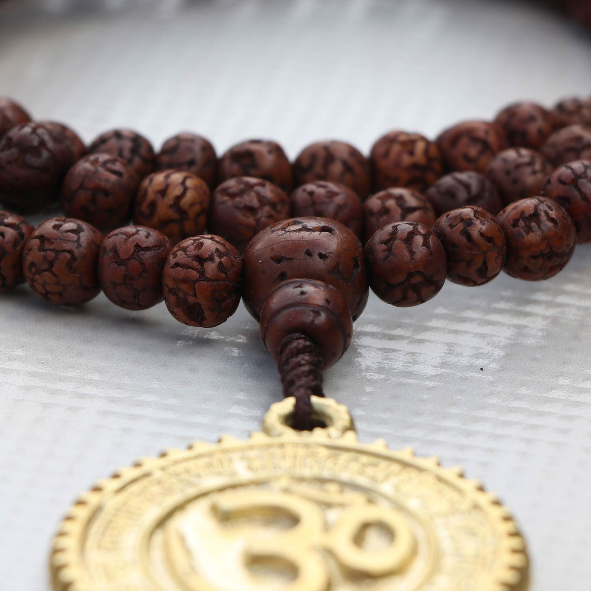 Dark Brown Hindu Om Rudraksha Bead Japa Mala