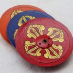 - Painted with fabric paints allowing for rich color and fine detail in the Double Dorje symbol
