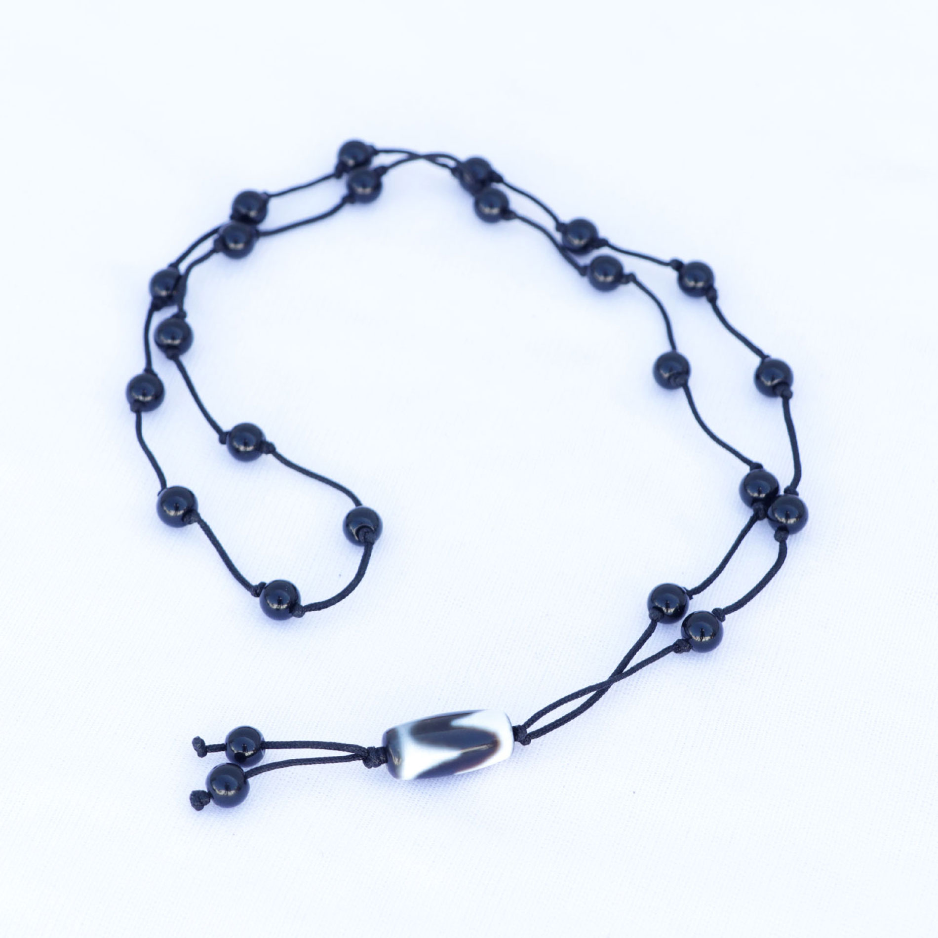 Dzi Beads Hand-Knotted Thread Black Onyx Necklace