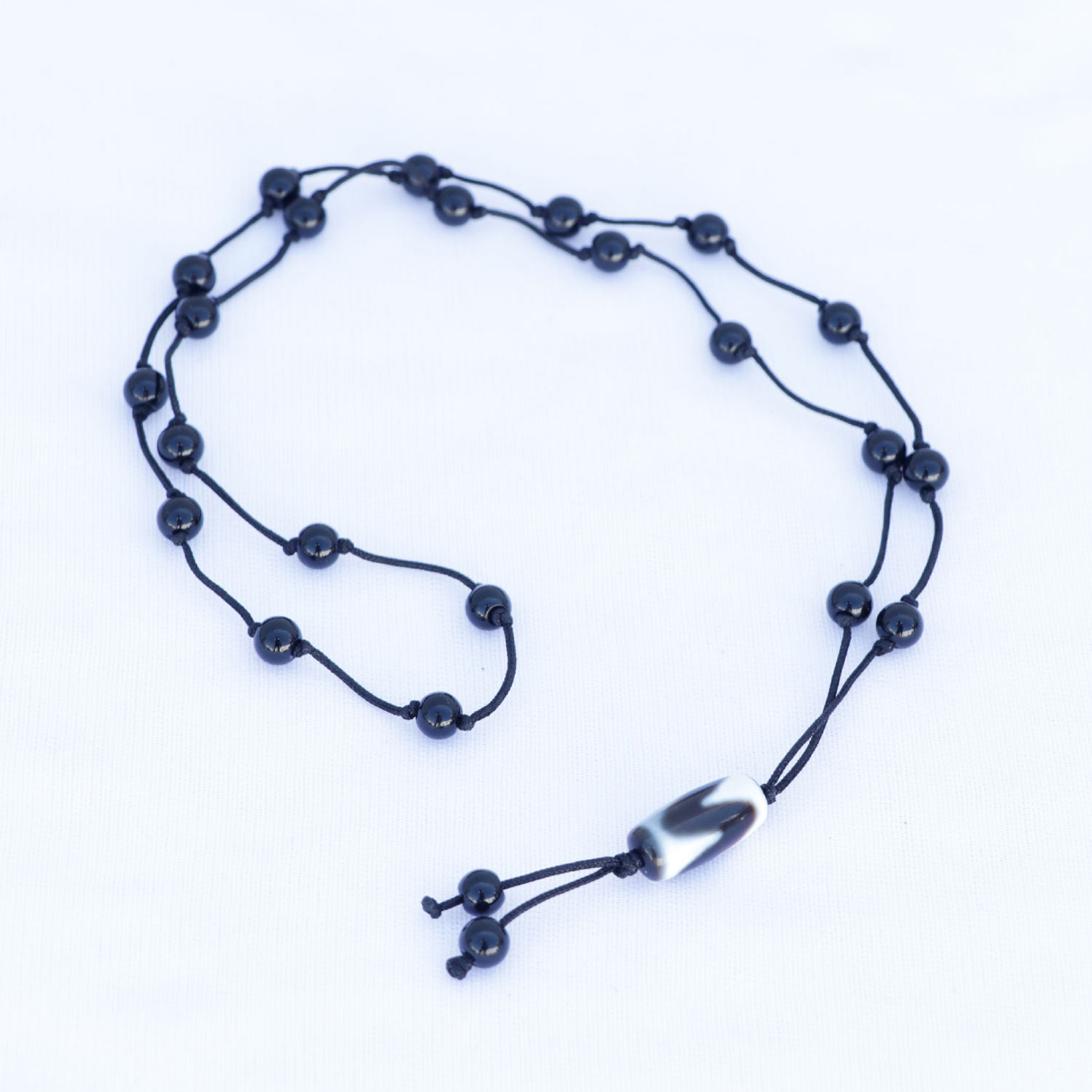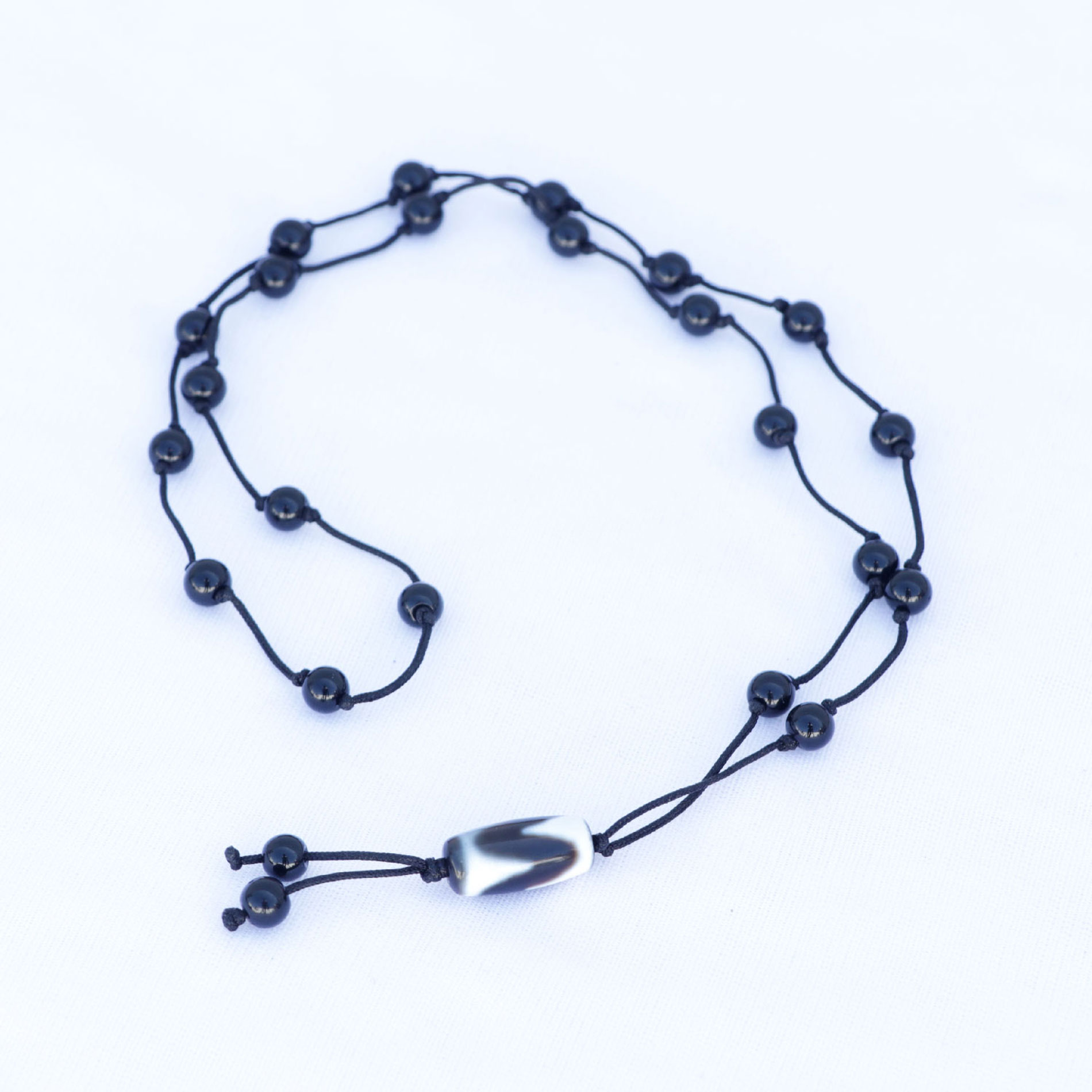 Benefits of Dzi Beads Hand-Knotted Thread Black Onyx Necklace