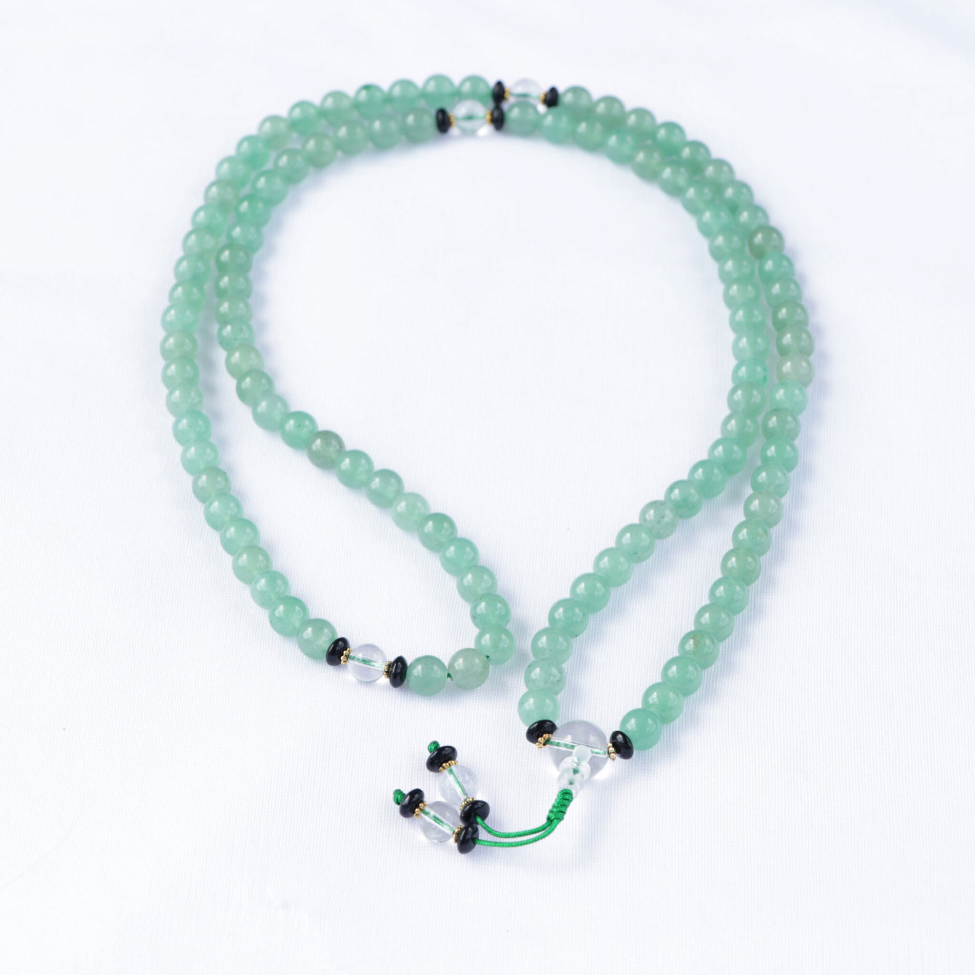 Green Aventurine Stone Japa Mala & Crystal Spacer