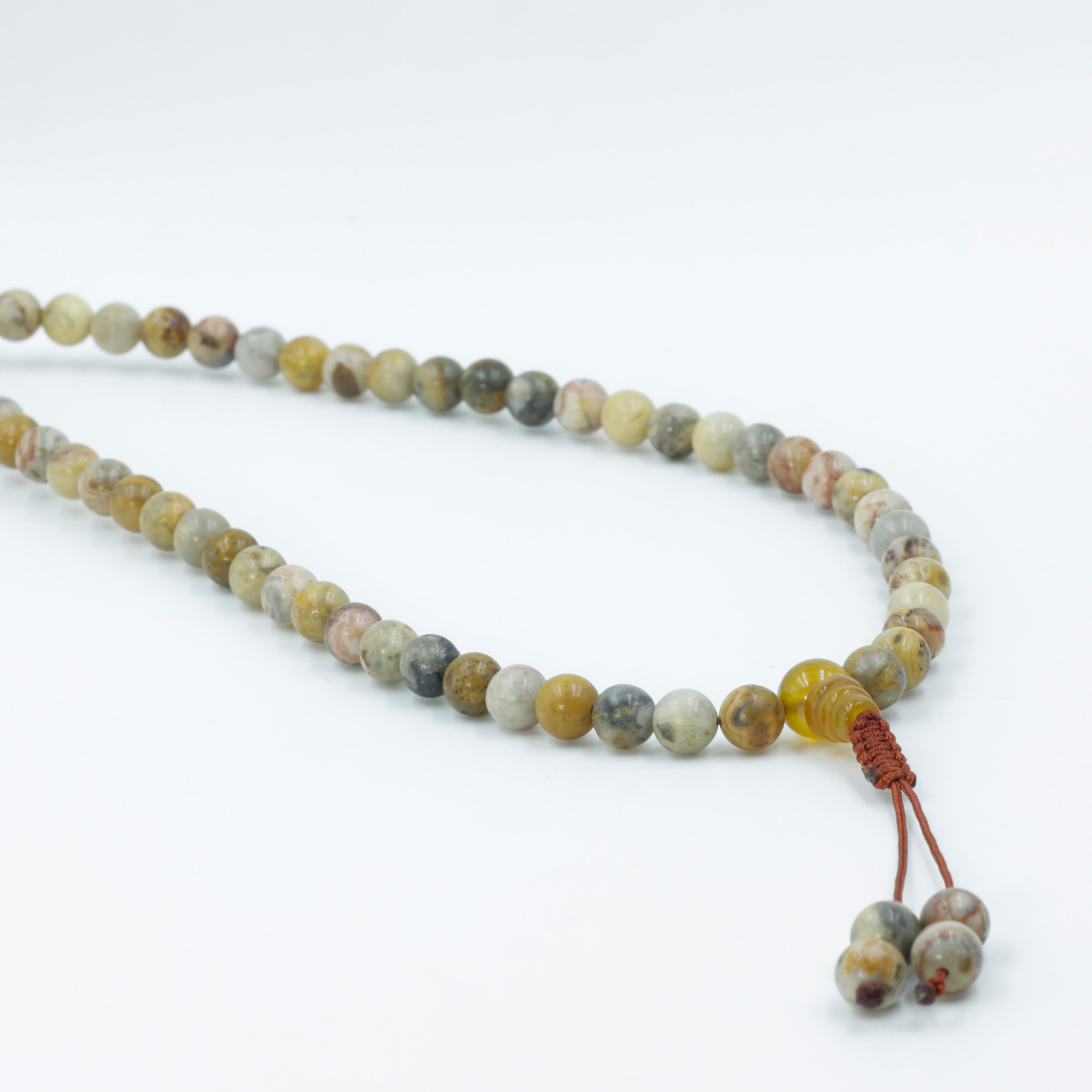 Obtain the premium Grounding Australian Butter Jasper Meditation Mala from Lotus Mala (Lotus Handicrafts).