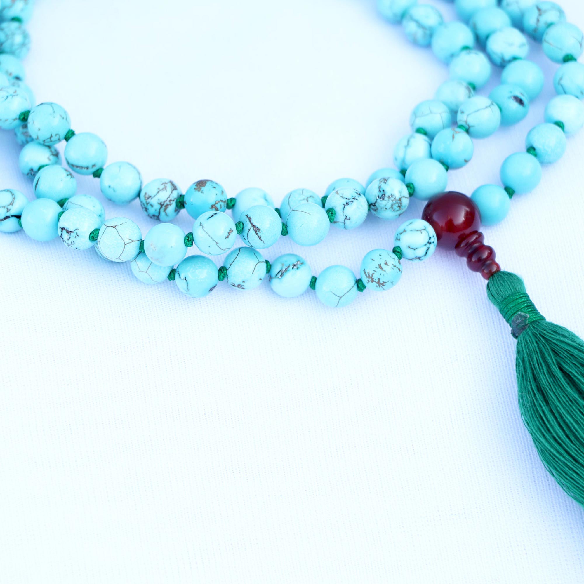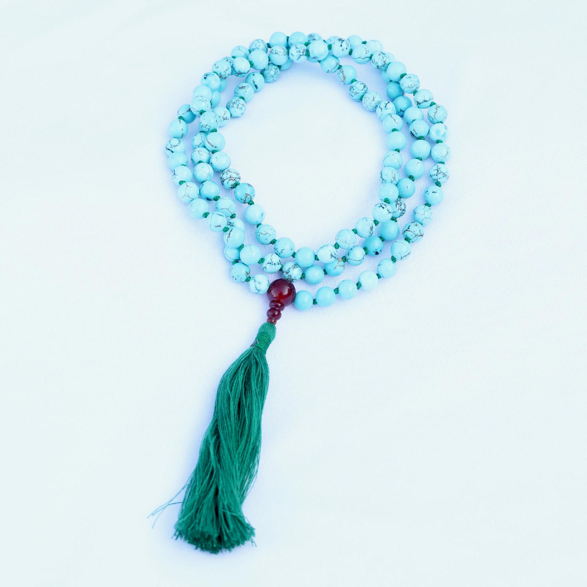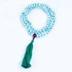 Hand-knotted Blue Turquoise prayer Stone mala with Tassel
