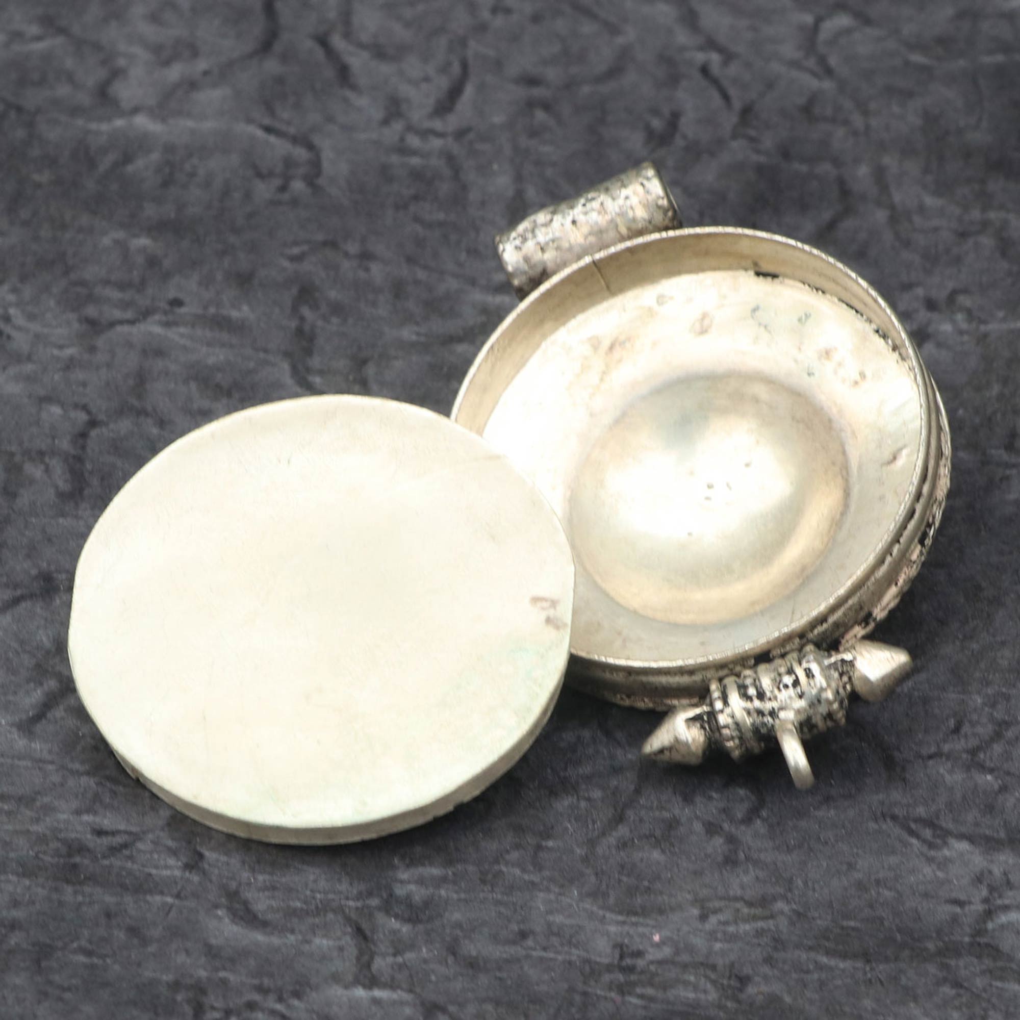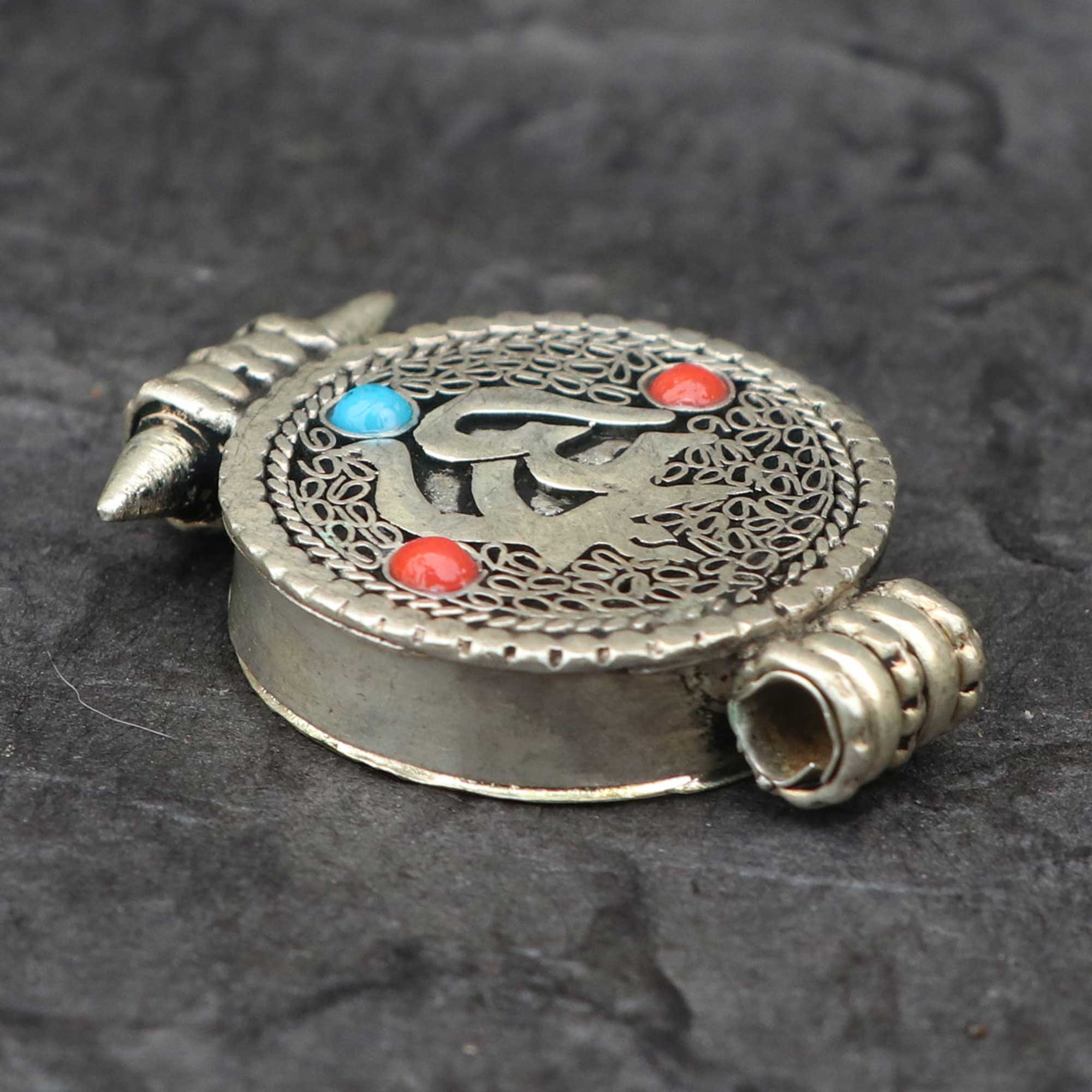 The Hindu Om Carved Ghau is a sacred prayer box or portable shrine, designed to hold small sacred items, mantras, or images of your favourite deity. It allows you to carry your deepest wishes, prayers, and intentions wherever you go. With the intricately carved Om symbol, this ghau reminds you of the primordial vibration of the universe and the spiritual essence of self.