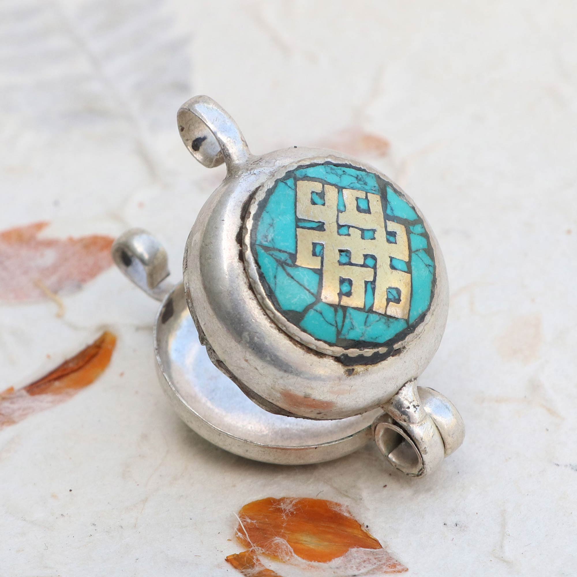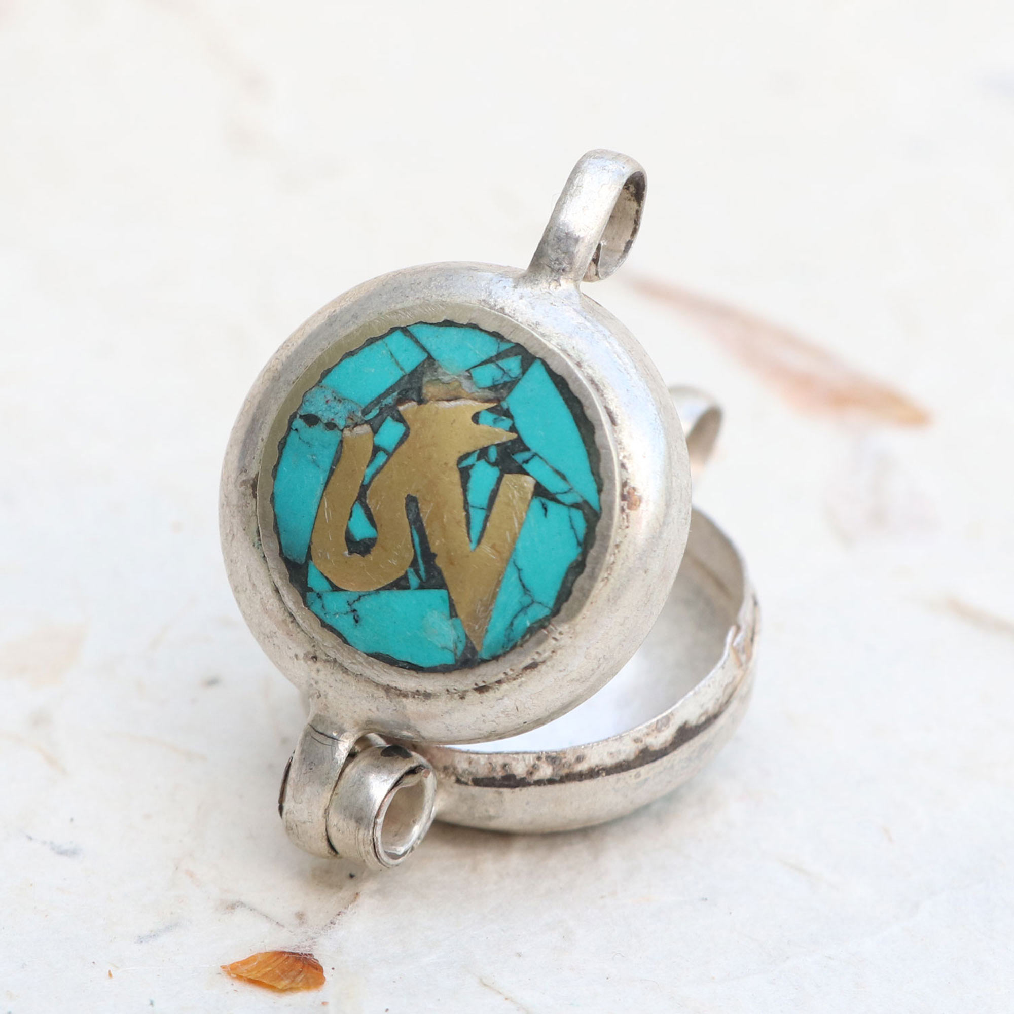 This Hindu Om Prayer Box is inlaid with turquoise, a stone revered for its healing and protective qualities. Turquoise supports vitality, emotional balance, and harmony of body, mind, and spirit. It is also considered a guardian stone for travellers, shielding against misfortune and danger. The calming energy of turquoise reflects the serenity of sea and sky, helping the wearer maintain peace and tranquillity throughout daily life.