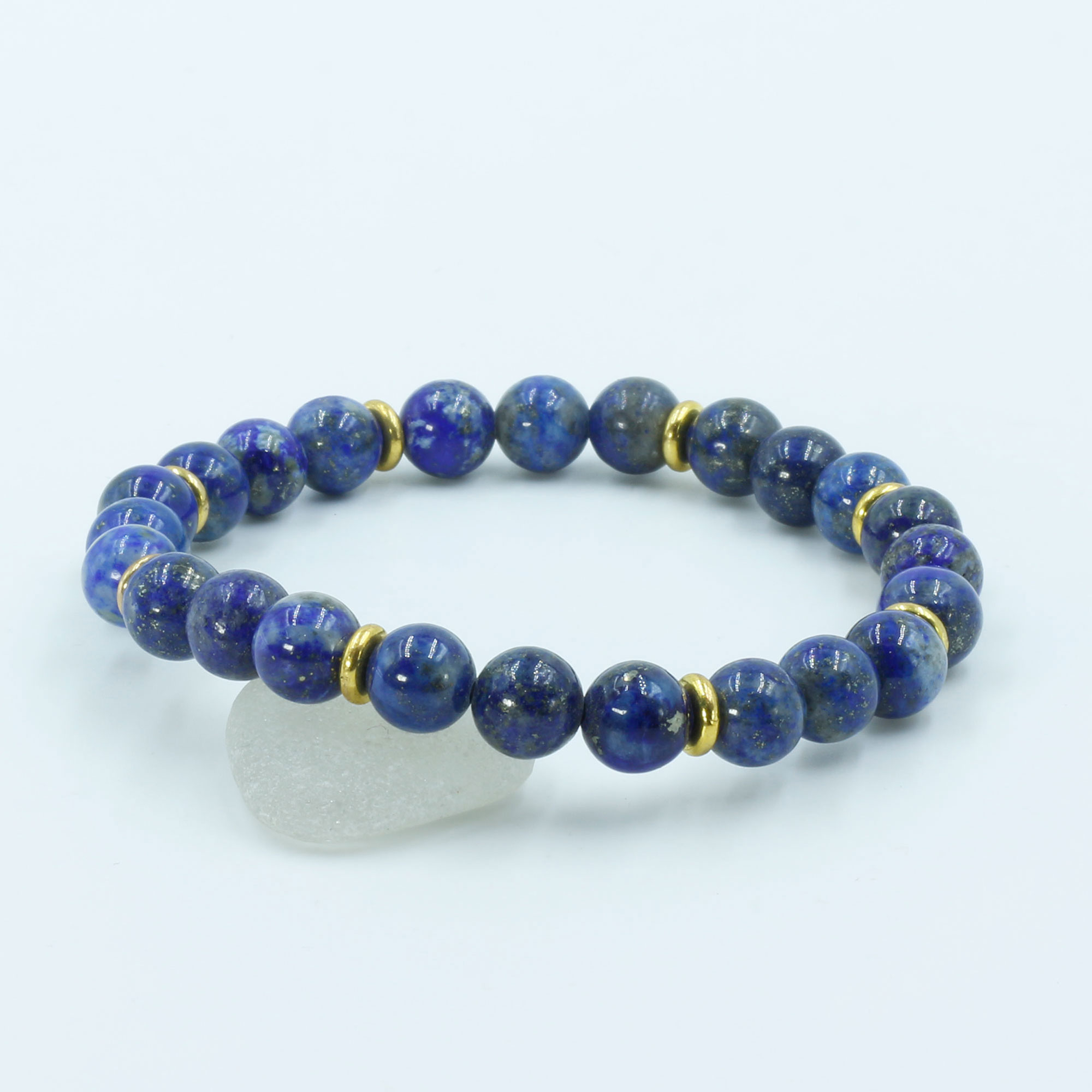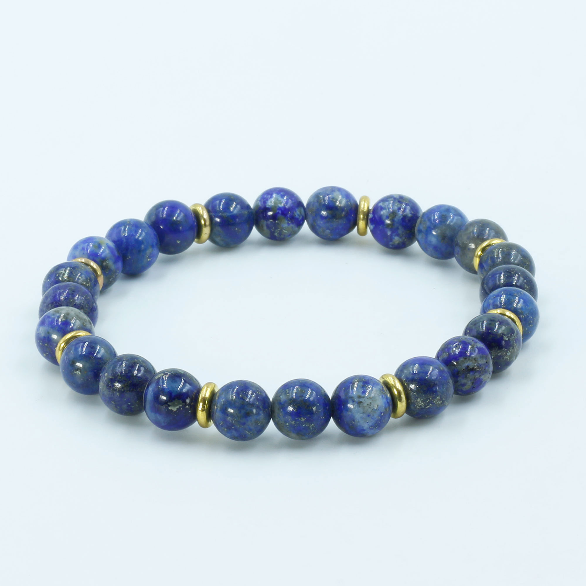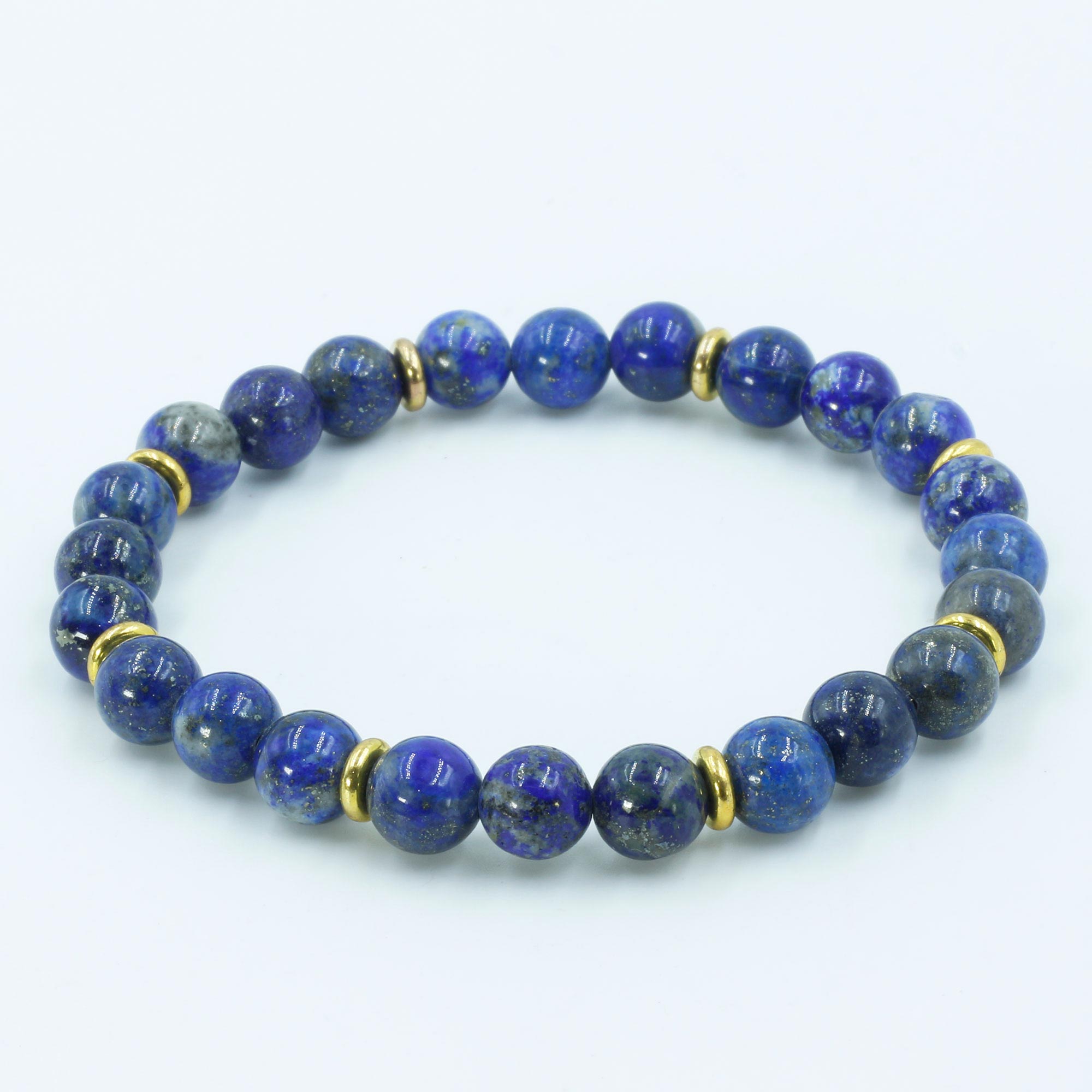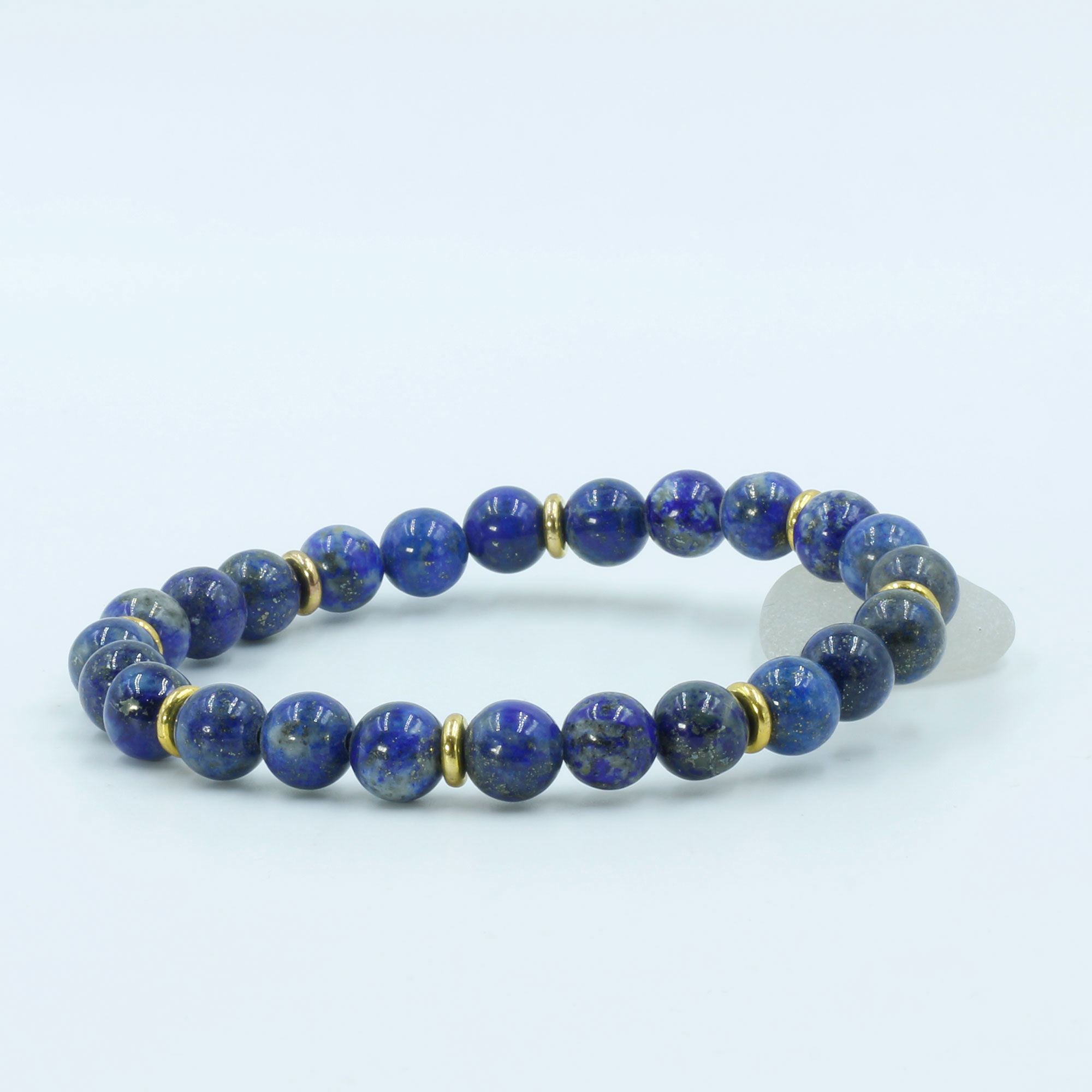 The Lapis Lazuli Wrist Mala with white metal rings is believed to encourage clarity of thought and inner wisdom. Lapis Lazuli has long been associated with truth, self-awareness, and confident self-expression. Many people value this stone for its calming influence on the mind, helping to reduce mental stress and confusion. It is often linked with enhanced focus, making it suitable for meditation and mindful practices. The deep blue color symbolizes depth, insight, and inner strength. White metal rings add a sense of balance and are often associated with protection and harmony. Wearing this wrist mala is thought to support emotional stability and thoughtful communication. It is commonly used as a reminder to stay aligned with one’s values and intentions. The combination of stone and metal creates a grounded yet refined energy. Overall, it is appreciated for both its meaningful symbolism and elegant appearance.