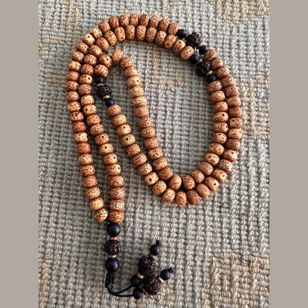 Lotus Seed 108 Mala with Rudraksha & Onyx – Lotus Mala