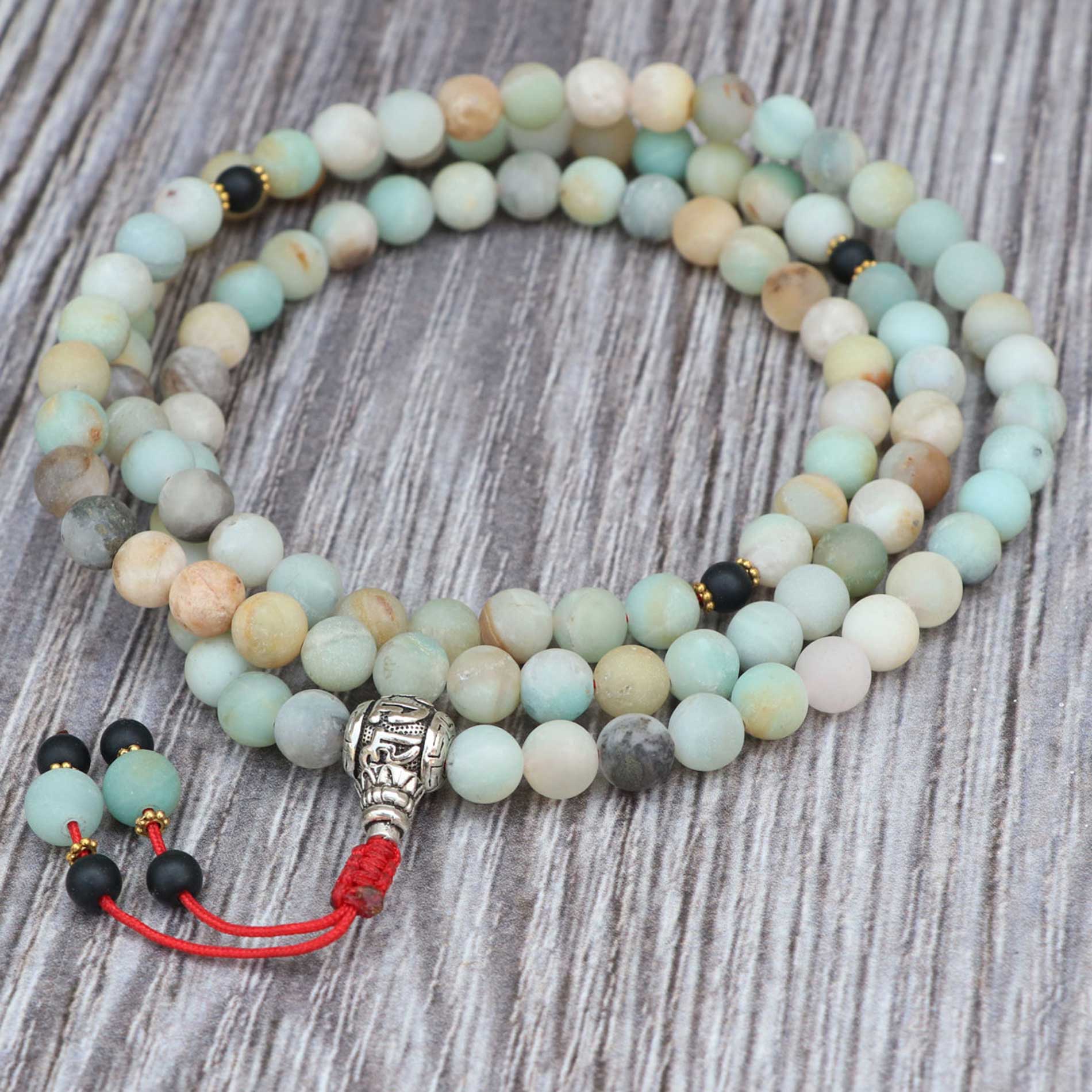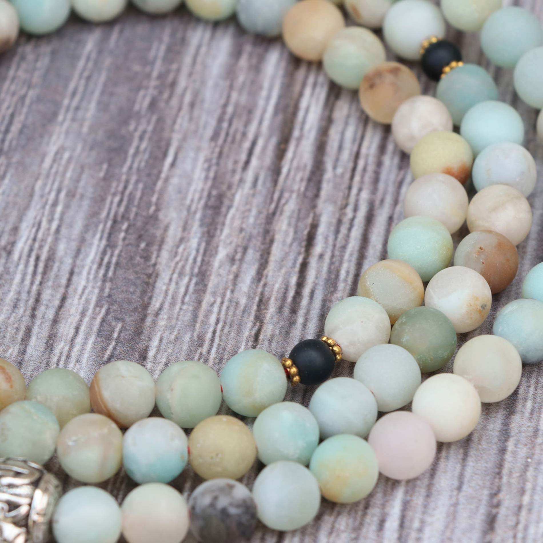 Upgrade to the ultimate quality of Matte Amazonite Stone Prayer Mala from Lotus Handicrafts (Lotus Mala).