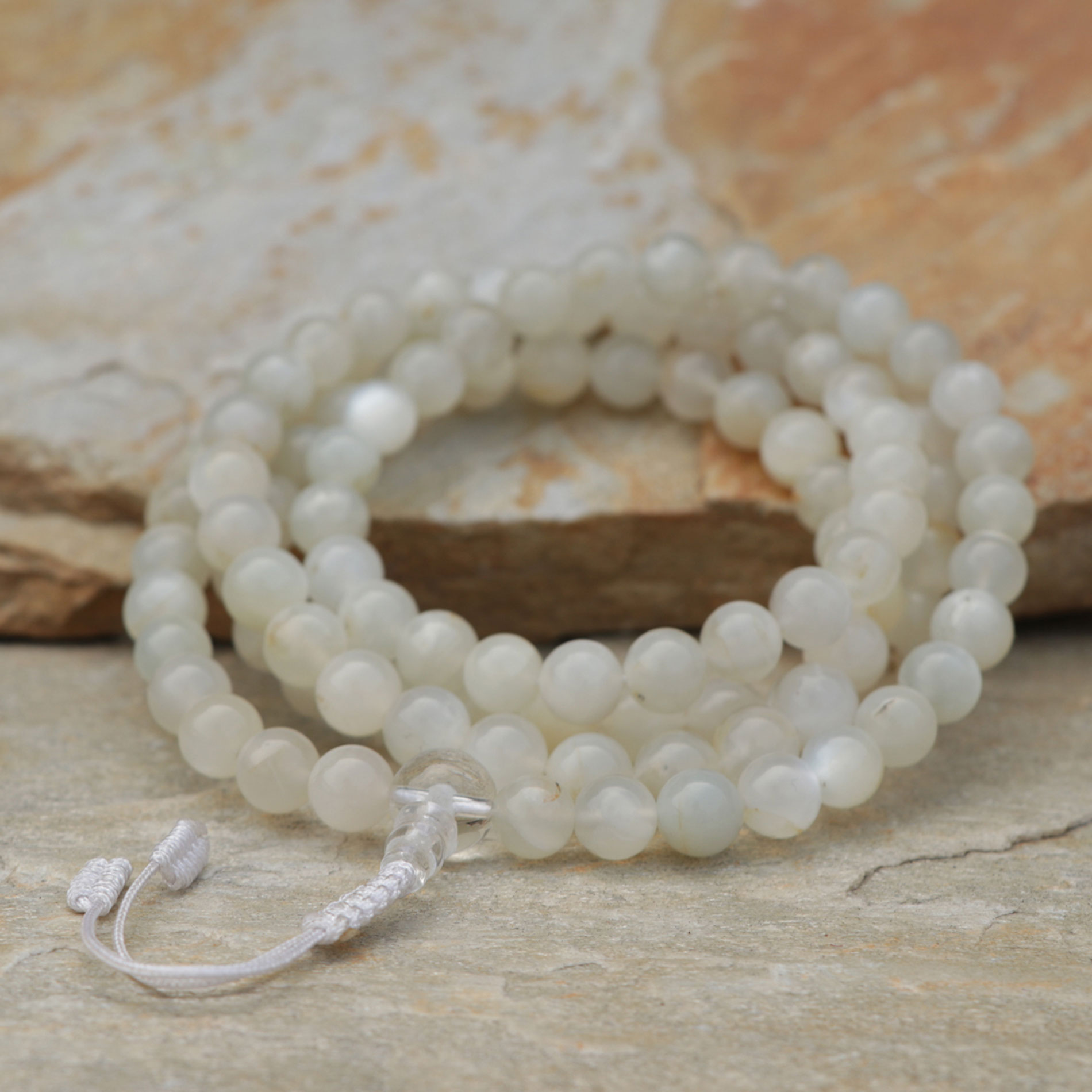Go with the top-tier Moon Stone Japa Mala from Lotus Handicrafts (Lotus Mala).