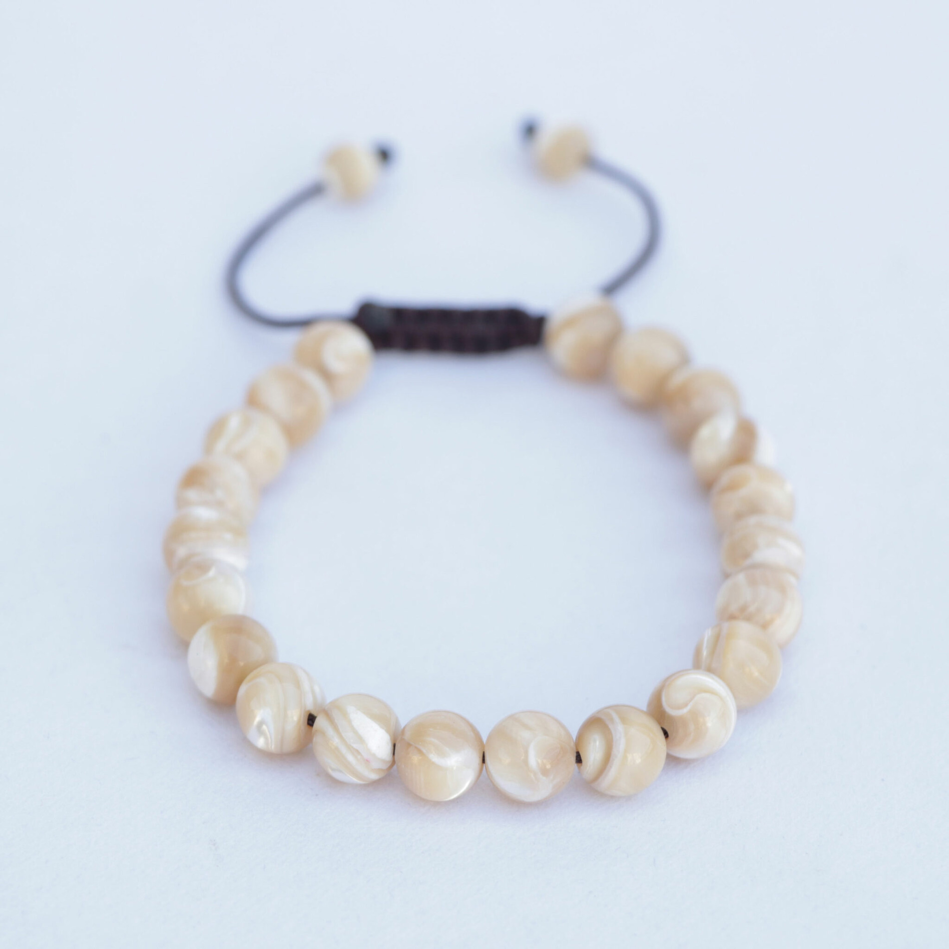 The Mother of Pearl Stone Japa Mala and Wrist Mala Pair is traditionally believed to symbolize calmness, emotional balance, and gentle protection. Mother of Pearl is often associated with soothing energy that encourages inner peace and a relaxed state of mind. Many practitioners believe it helps ease stress and supports emotional healing by promoting compassion and understanding. Its soft, iridescent appearance is commonly linked with purity, intuition, and nurturing energy. This material is also traditionally regarded as protective, believed to shield against negativity while fostering a sense of security. Wearing both the mala and bracelet together is thought to create a continuous flow of calming and harmonizing energy throughout the day. The set is often used during meditation or prayer to enhance focus, mindfulness, and emotional clarity. Some believe it encourages patience, kindness, and thoughtful communication. Many people also wear it as a reminder to stay calm, balanced, and connected to their inner peace. Overall, it is valued for its traditional associations with tranquility, protection, and emotional harmony.