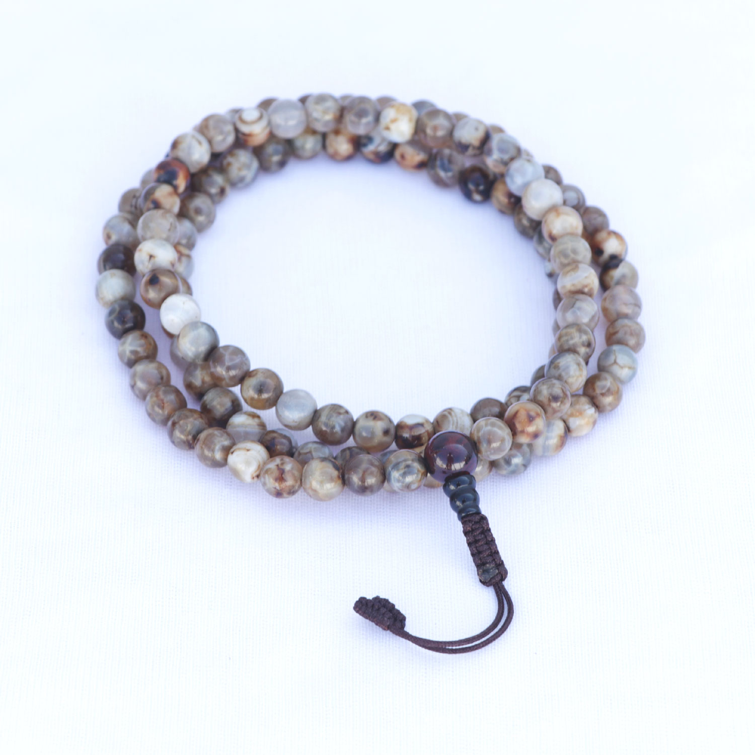 Select the premier Natural Mexican Crazy Lace Agate Stone Round Beads Mala & Wrist mala / Bracelet set from Lotus Handicrafts (Lotus Mala).