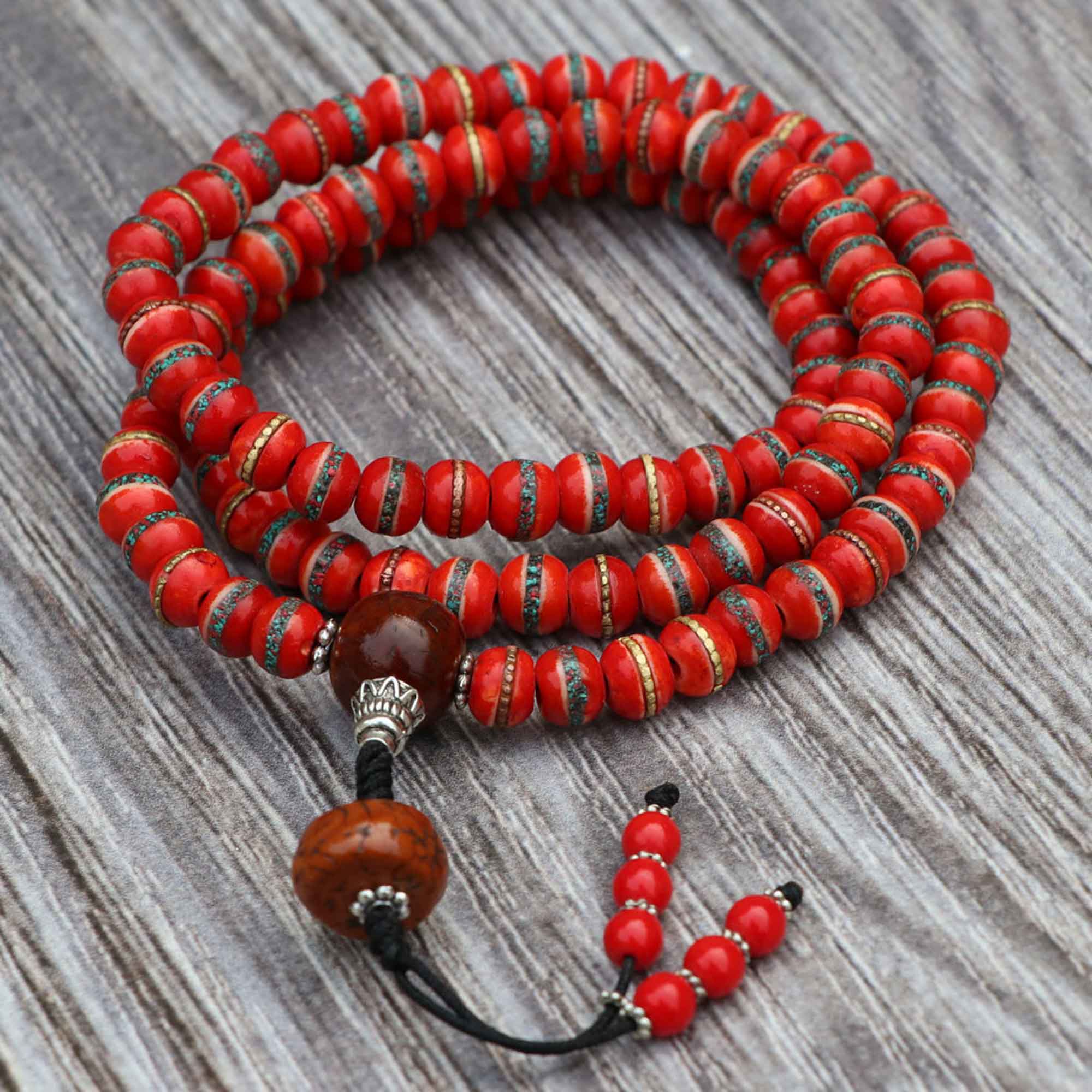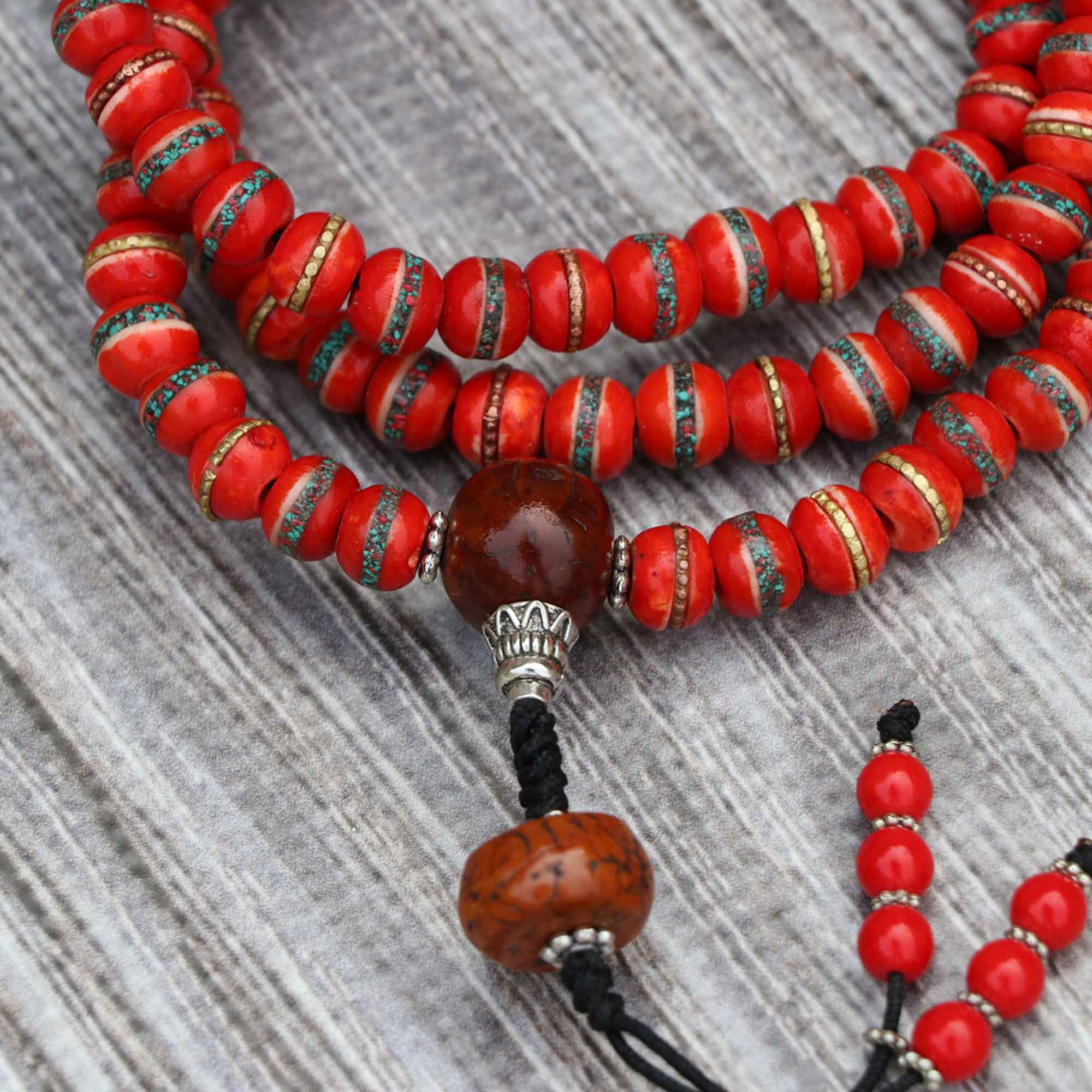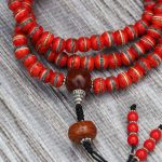 Invest in the finest Red Inlaid Yak Bone Prayer Mala from Lotus Mala (Lotus Handicrafts).