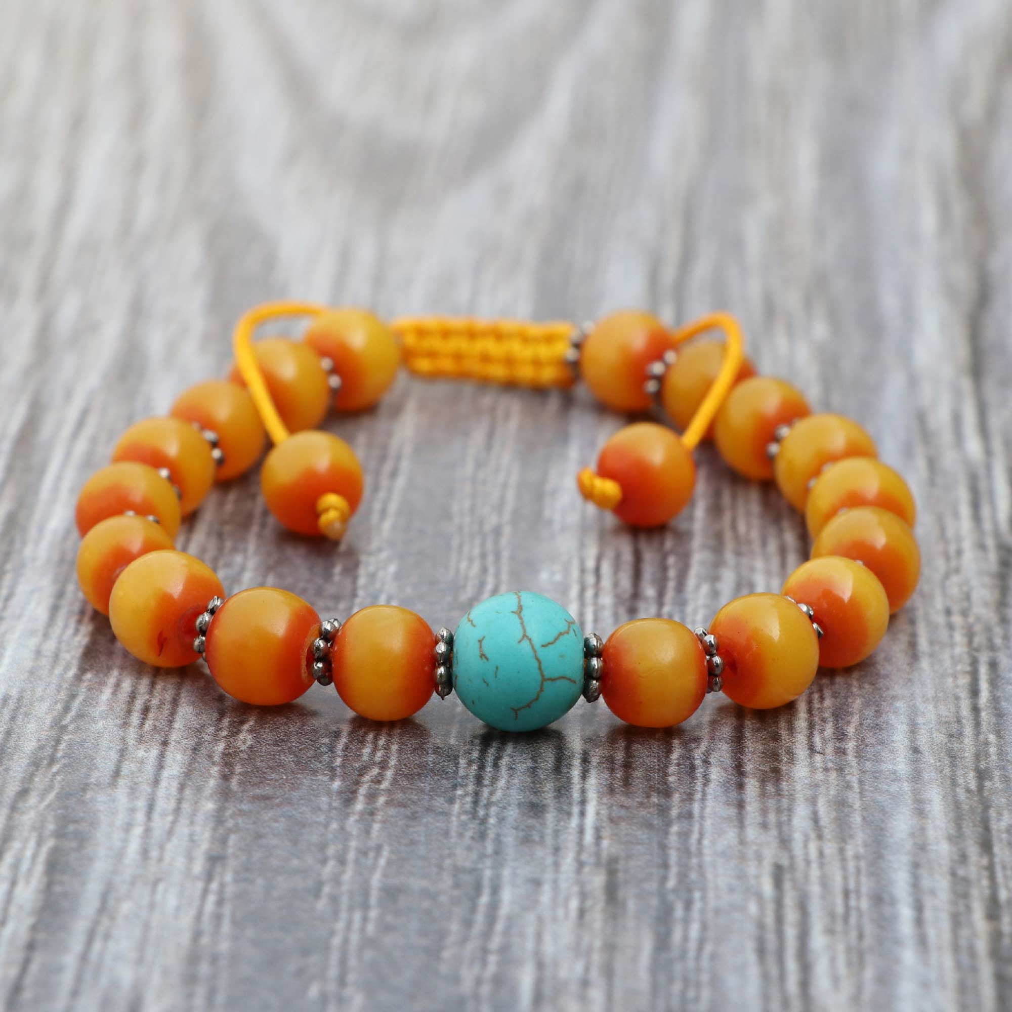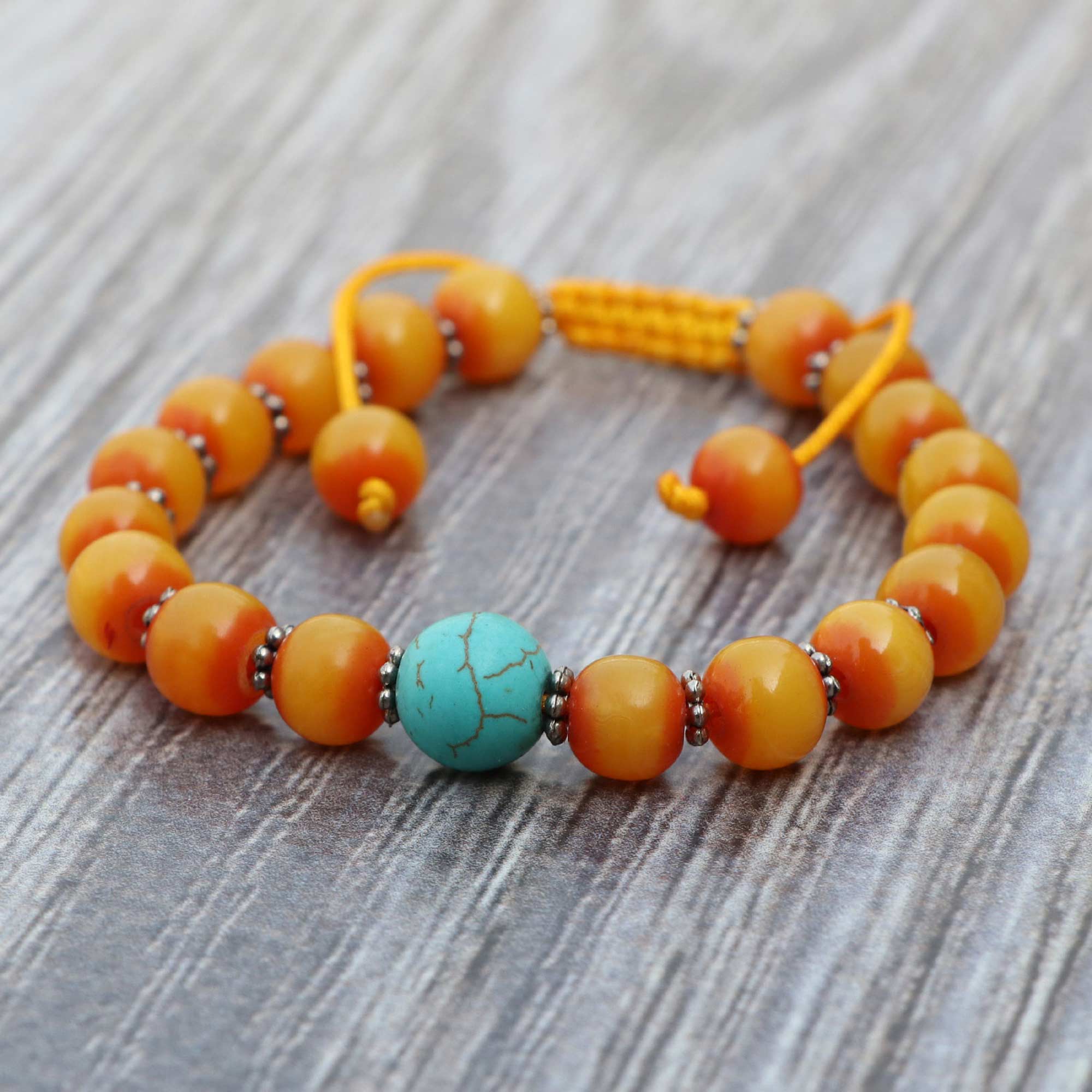 Resin Ambar Wrist Mala With Turquoise Stone Spacer
