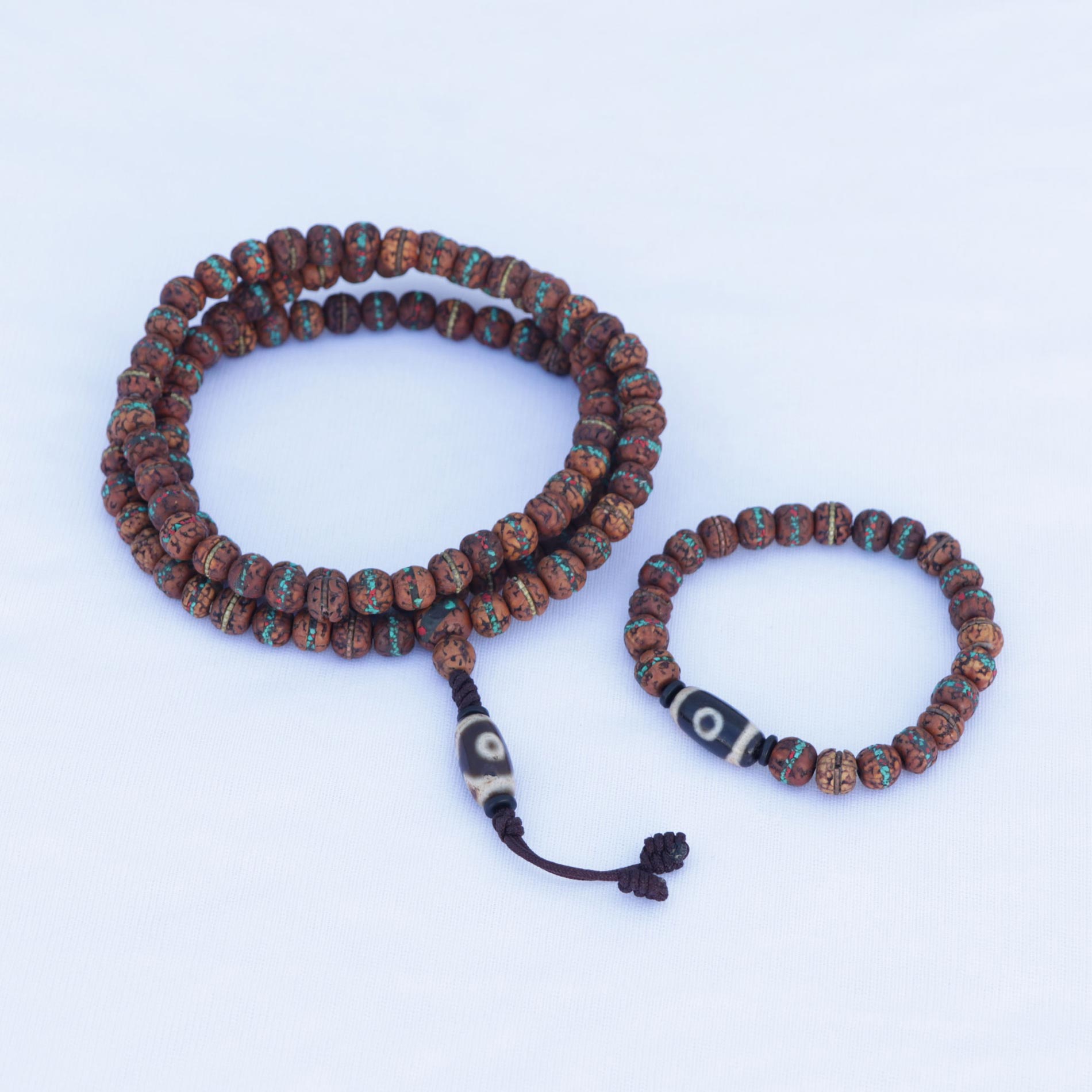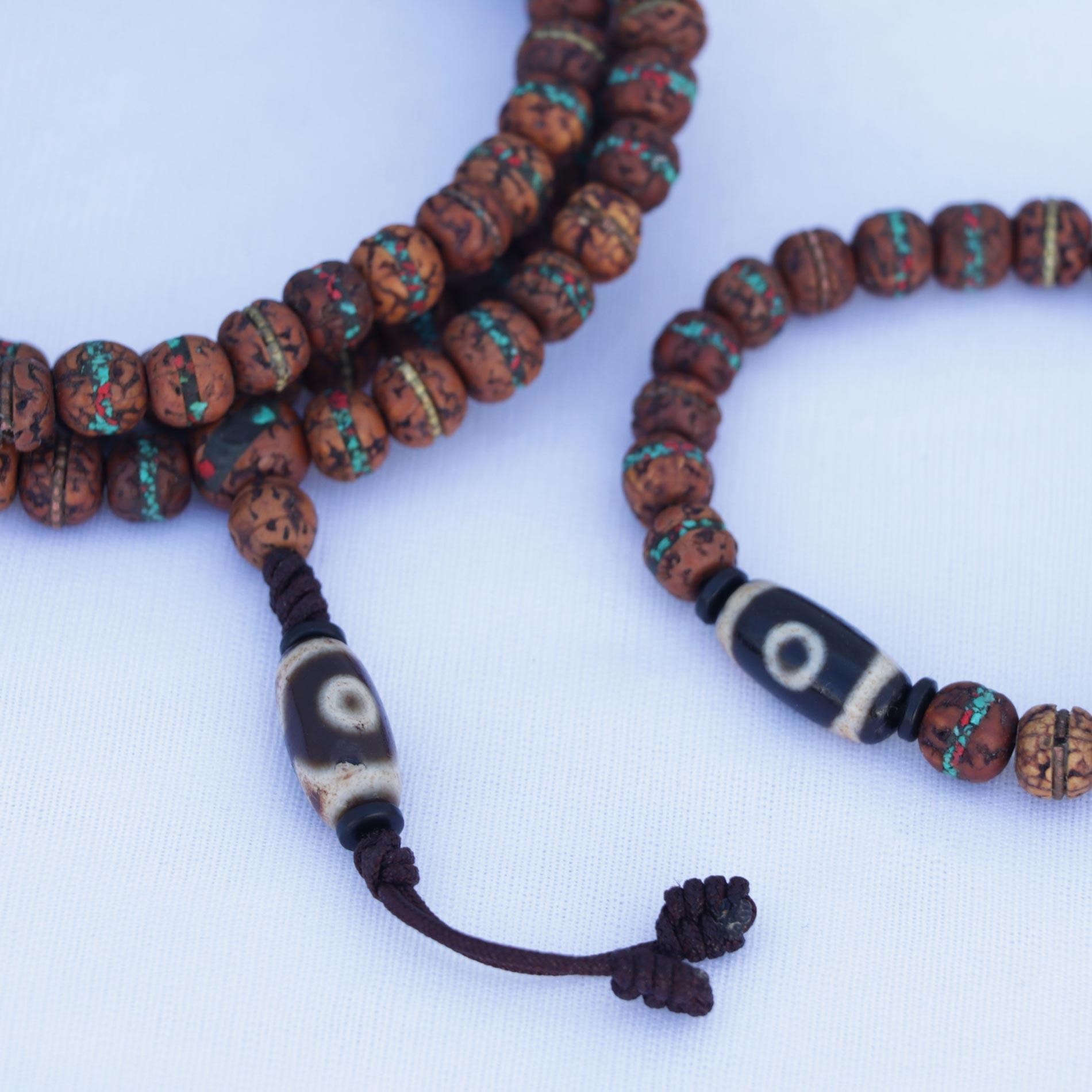 - Combination of rudraksha seeds and Tibetan Dzi beads