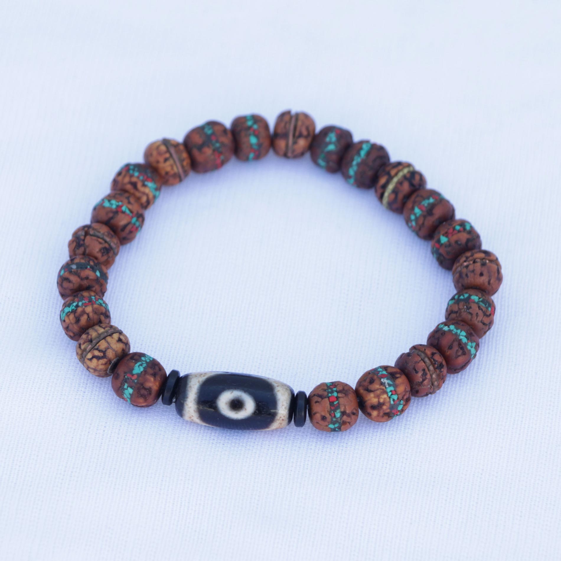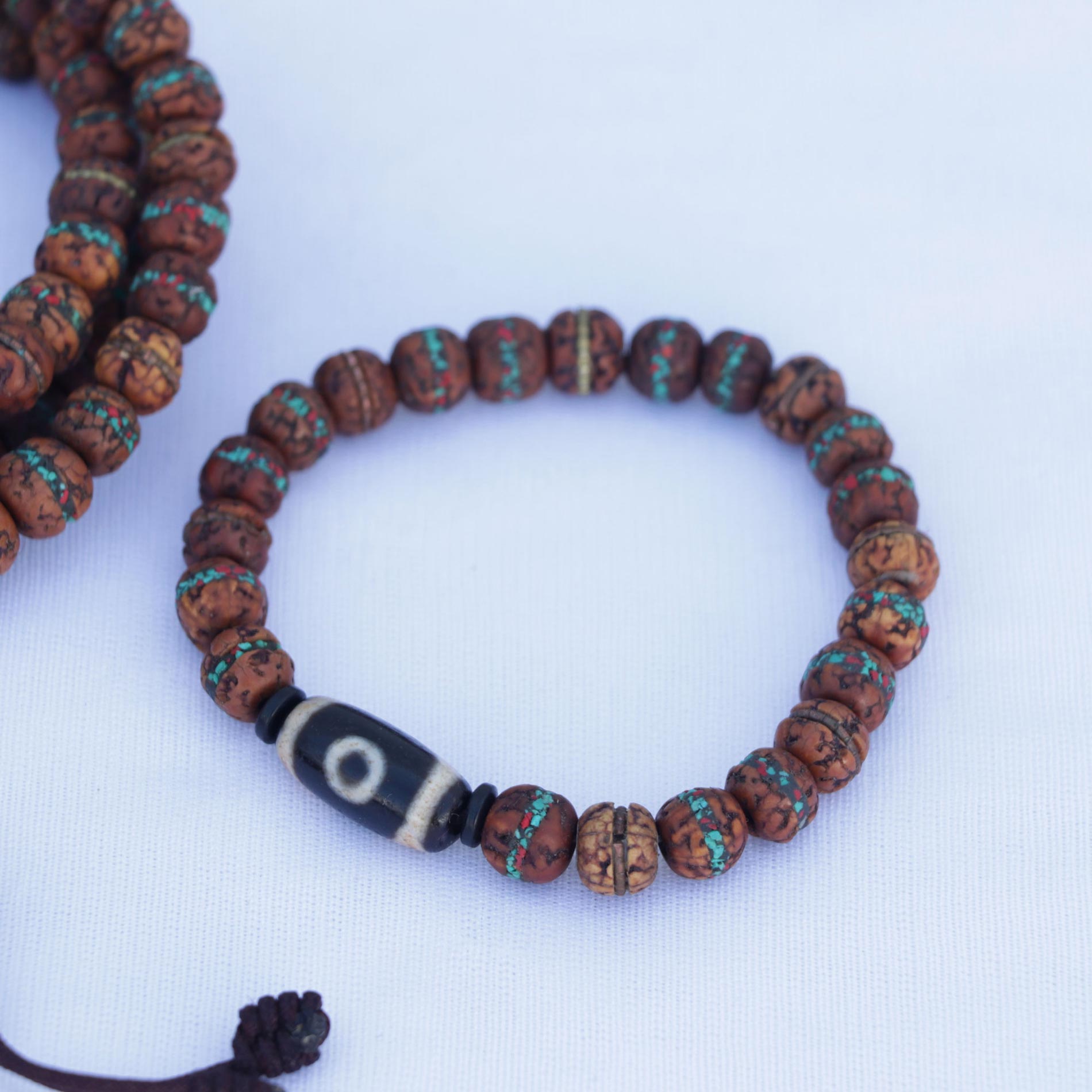 - Material: Rudraksha Seed, Tibetan Dzi Beads