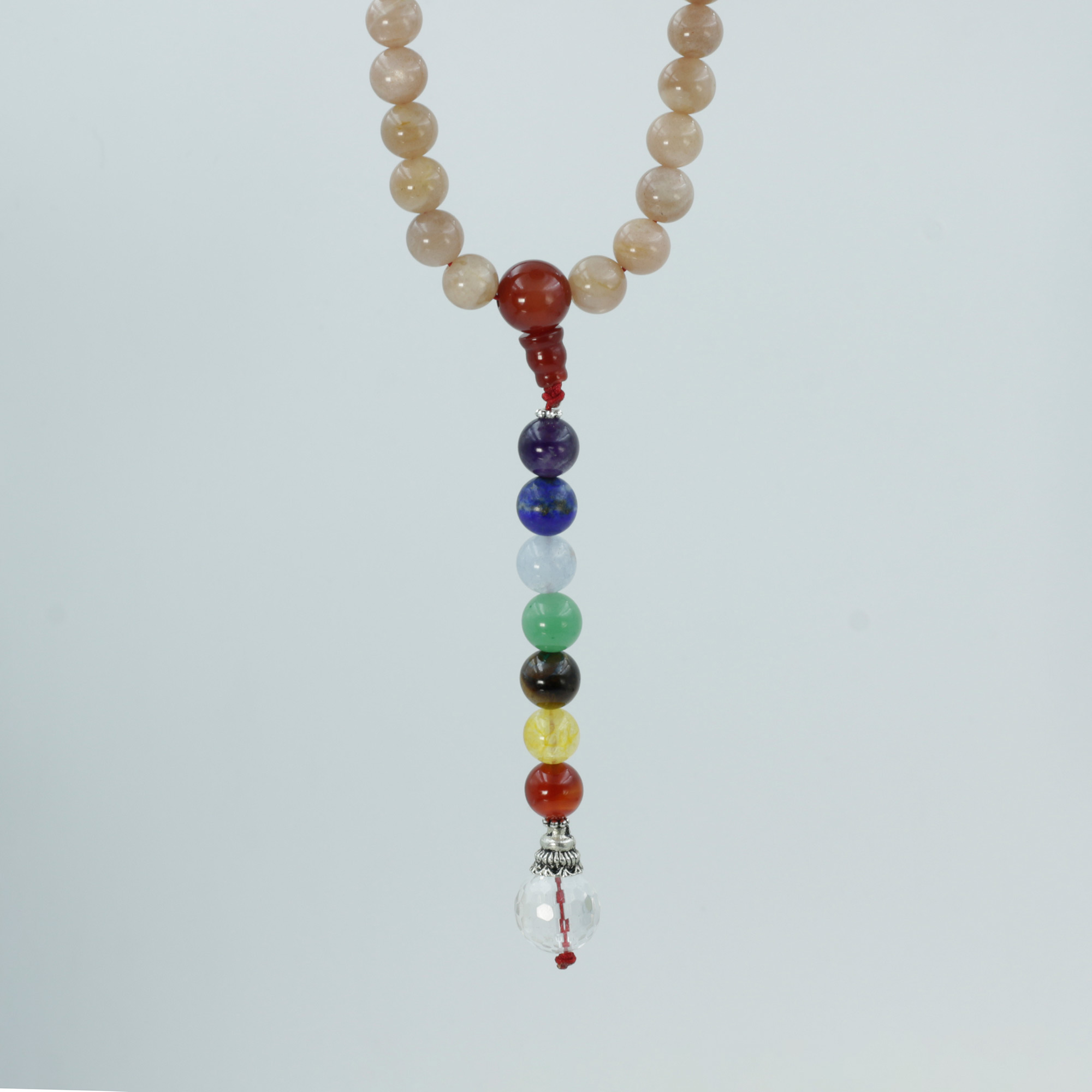 Embrace joy, confidence, and vibrant energy with the Seven Chakra Sunstone Necklace from Lotus Mala.