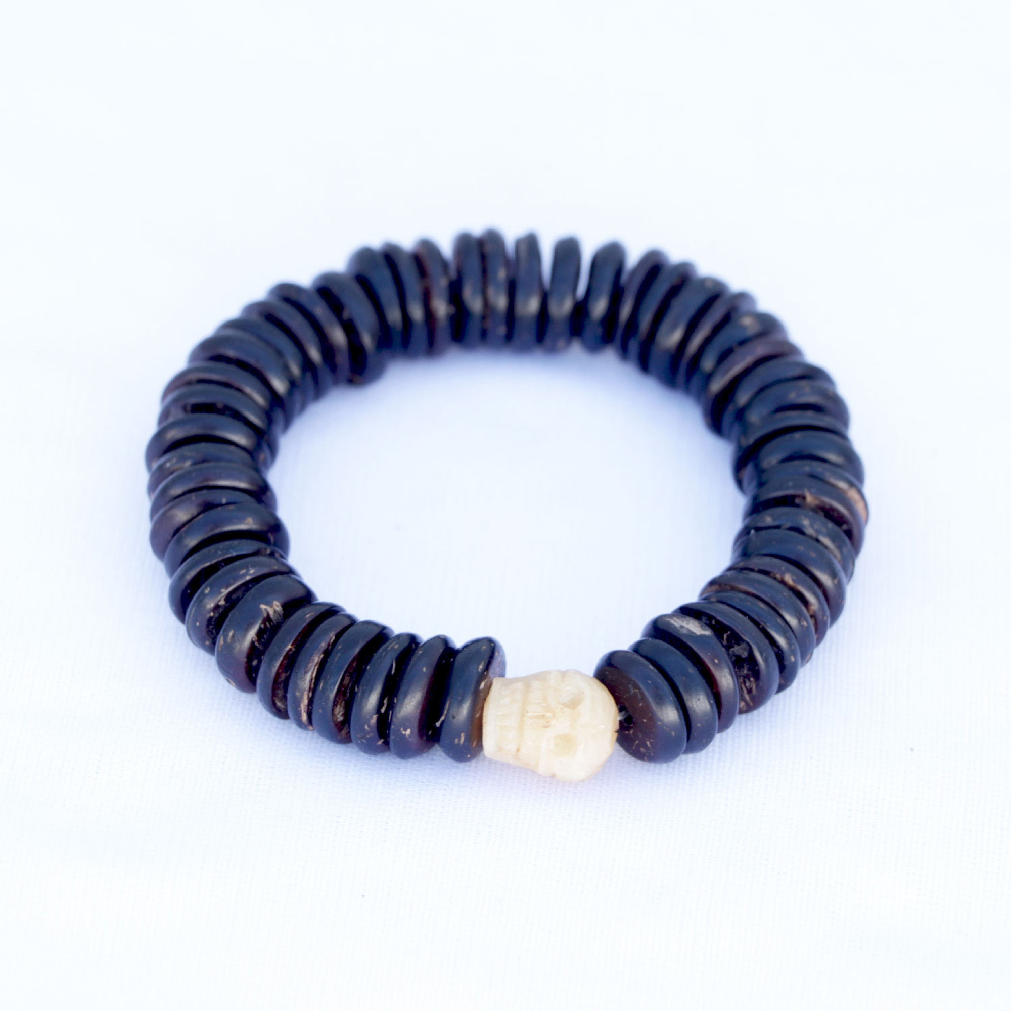 Choose the ultimate Tibetan Inlaid Dark Yak Bone Wrist Mala / Bracelet With Skull Beads from Lotus Mala (Lotus Handicrafts).