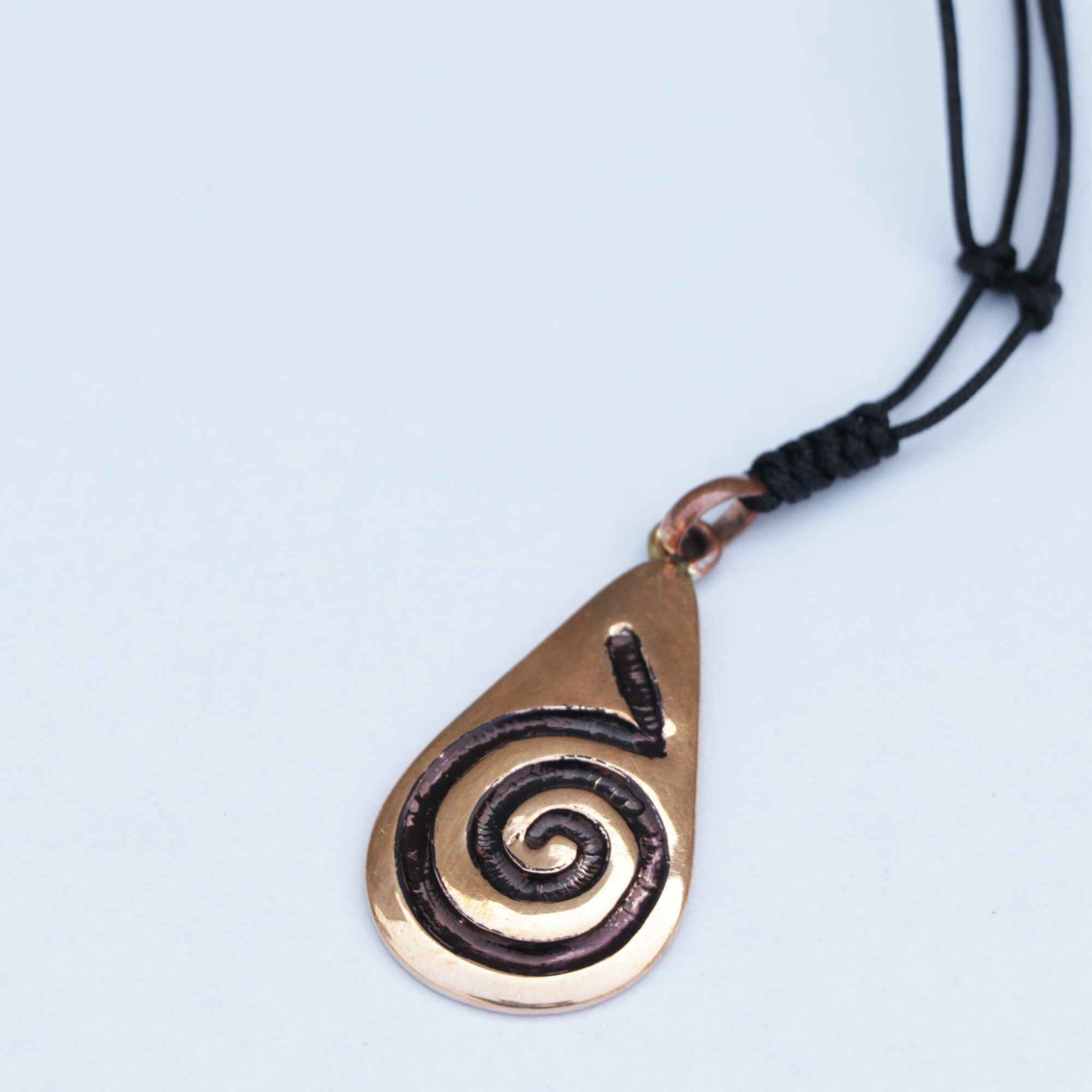 Feel the empowering presence of wisdom and inner clarity with the beautifully crafted Spiral Sign Carved Copper Locket from Lotus Mala.