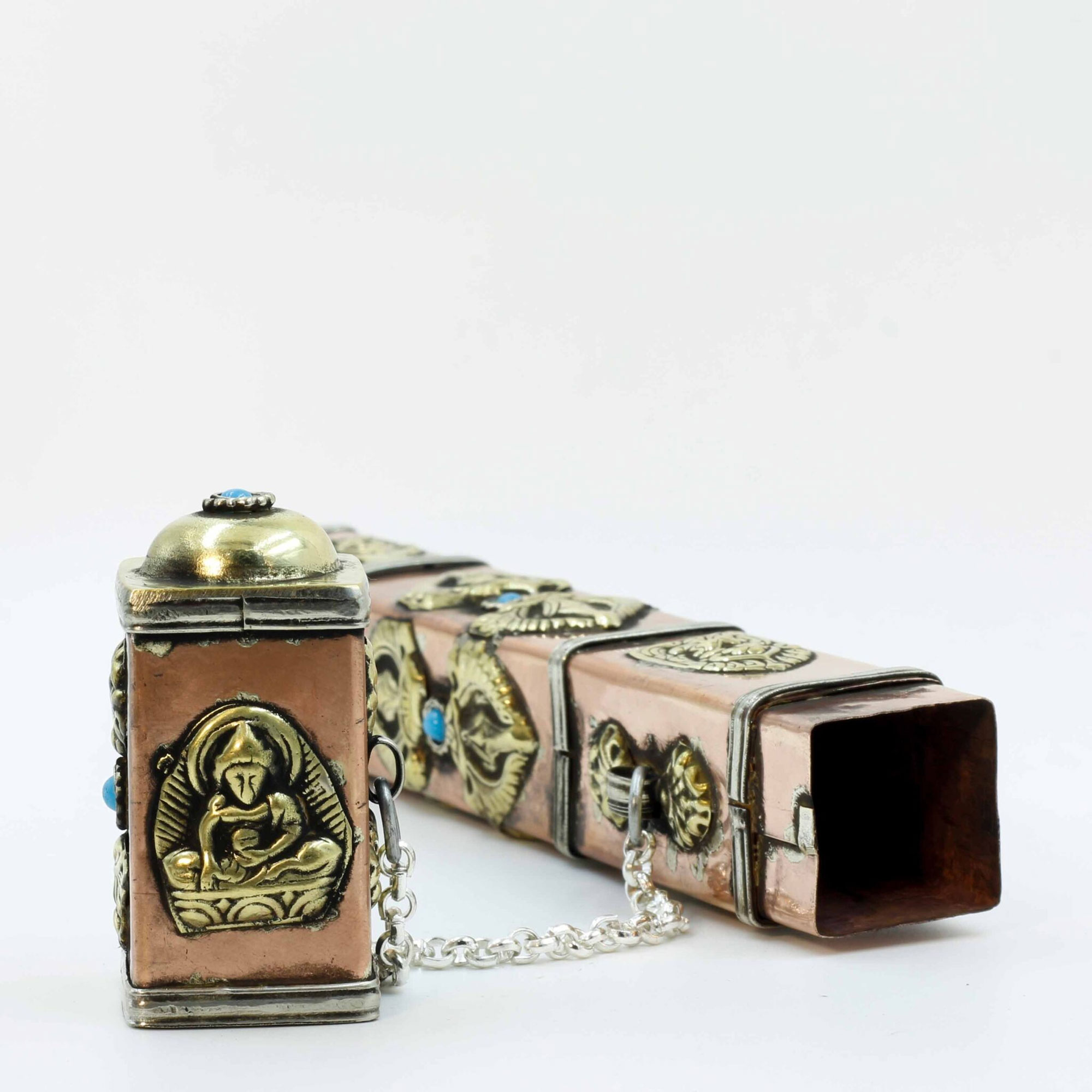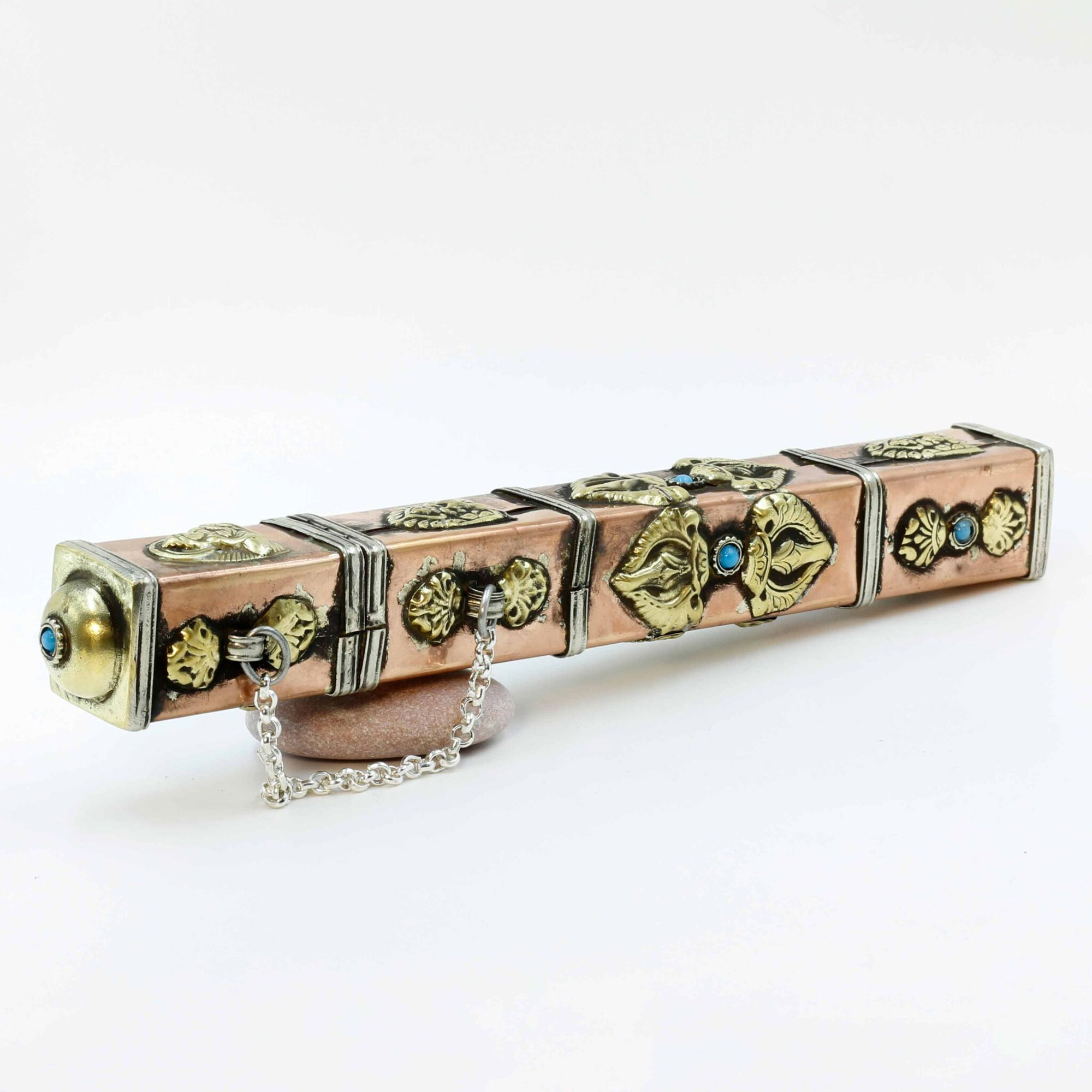 - Intricately engraved with sacred Tibetan symbols, including the Endless Knot