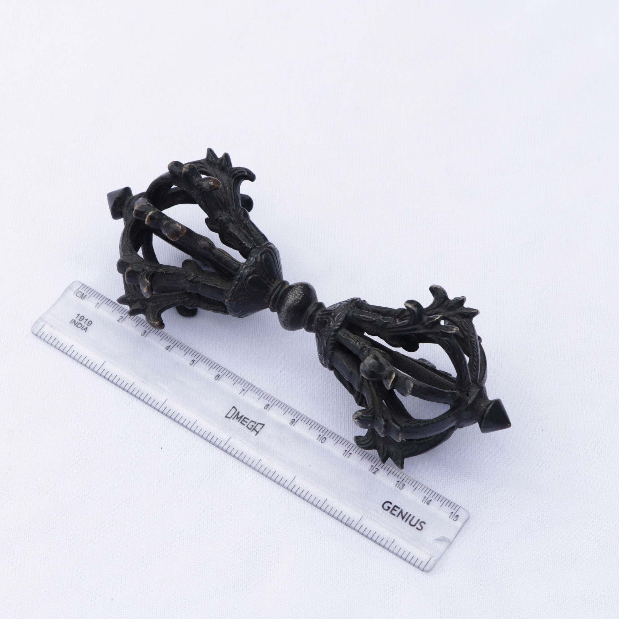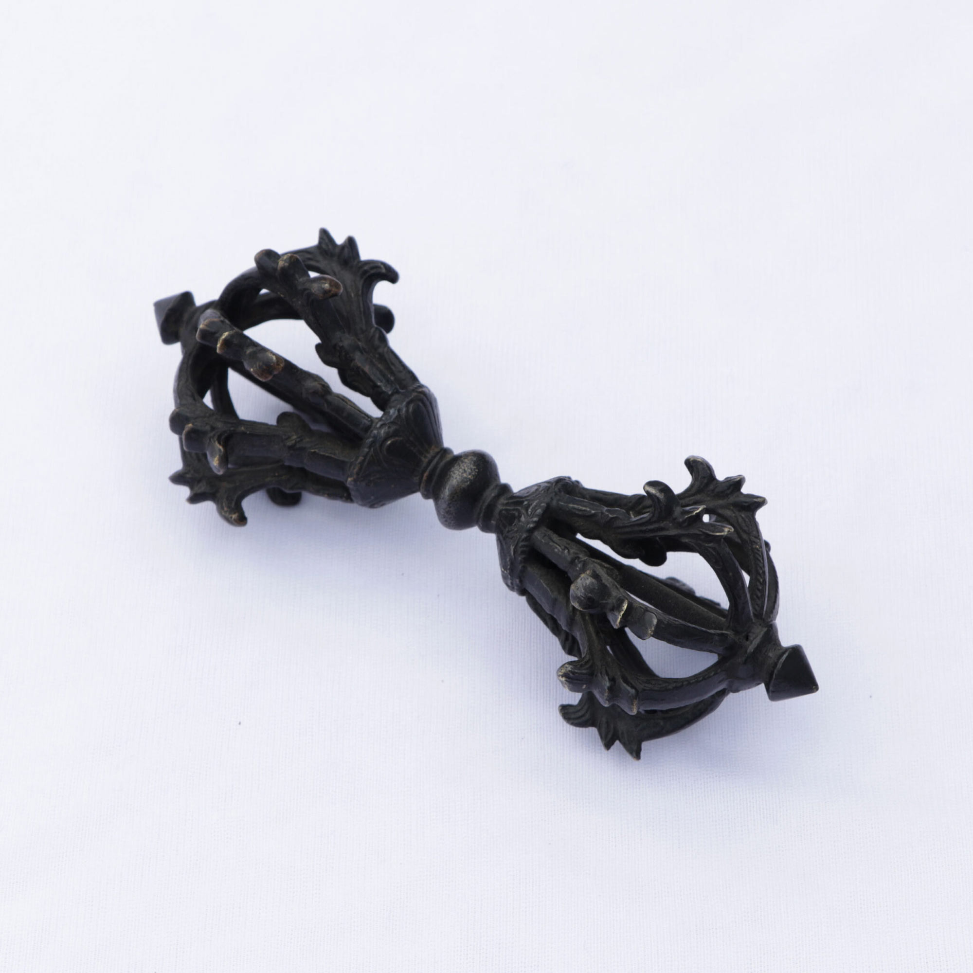 Welcome the Tibetan Antique Brass Vajra/Dorje from Lotus Mala (Lotus Handicrafts) into your sacred space and let it guide your journey with wisdom, balance, and quiet divine strength.