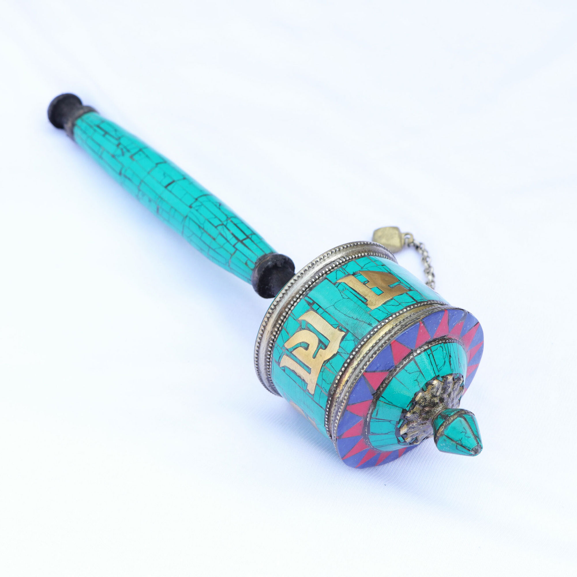 As one of Nepal’s leading wholesalers and distributors of meditation and spiritual supplies, you can purchase the Tibetan Inlaid Stone Hand Prayer Wheel at an unbeatable price from Lotus Mala (Lotus Handicrafts).