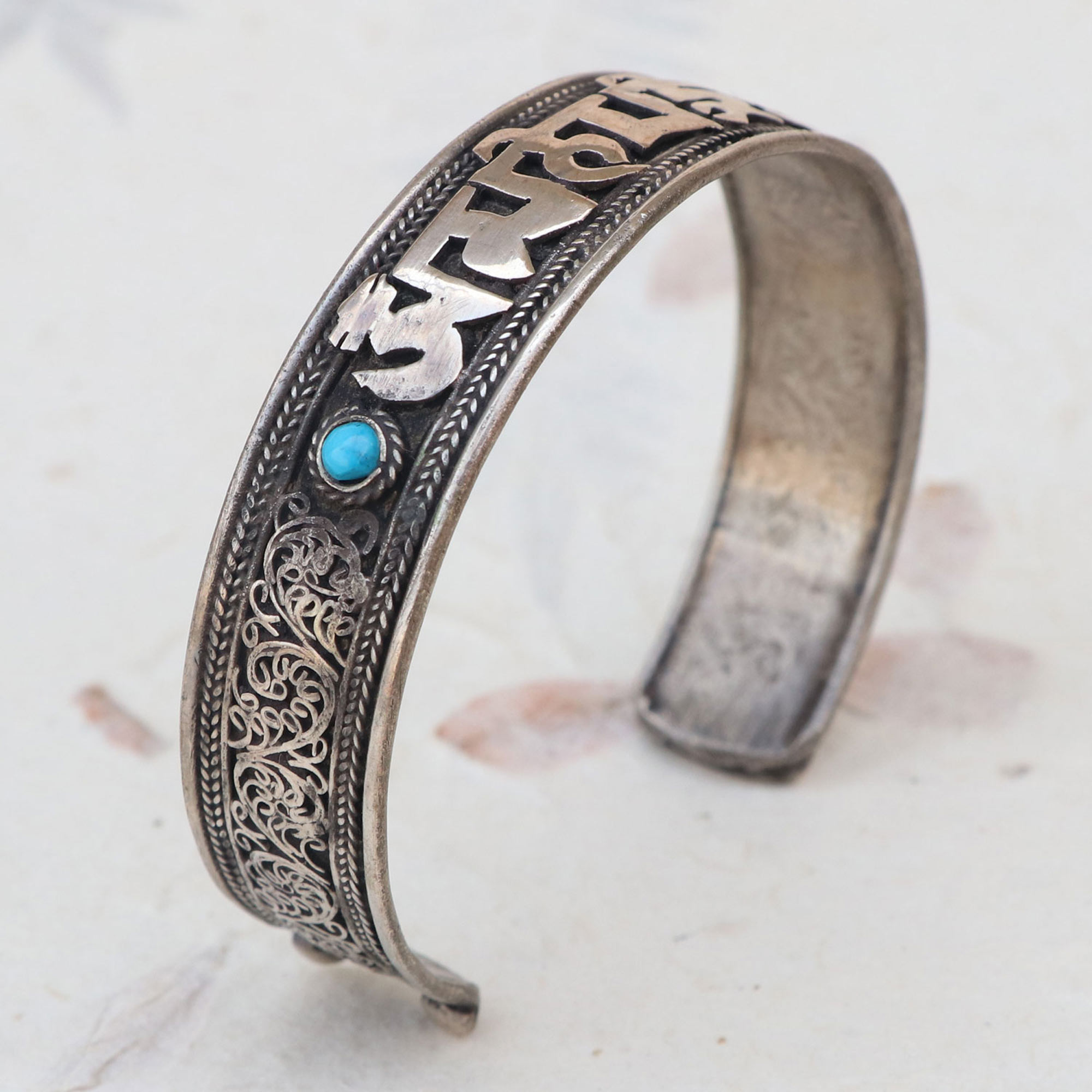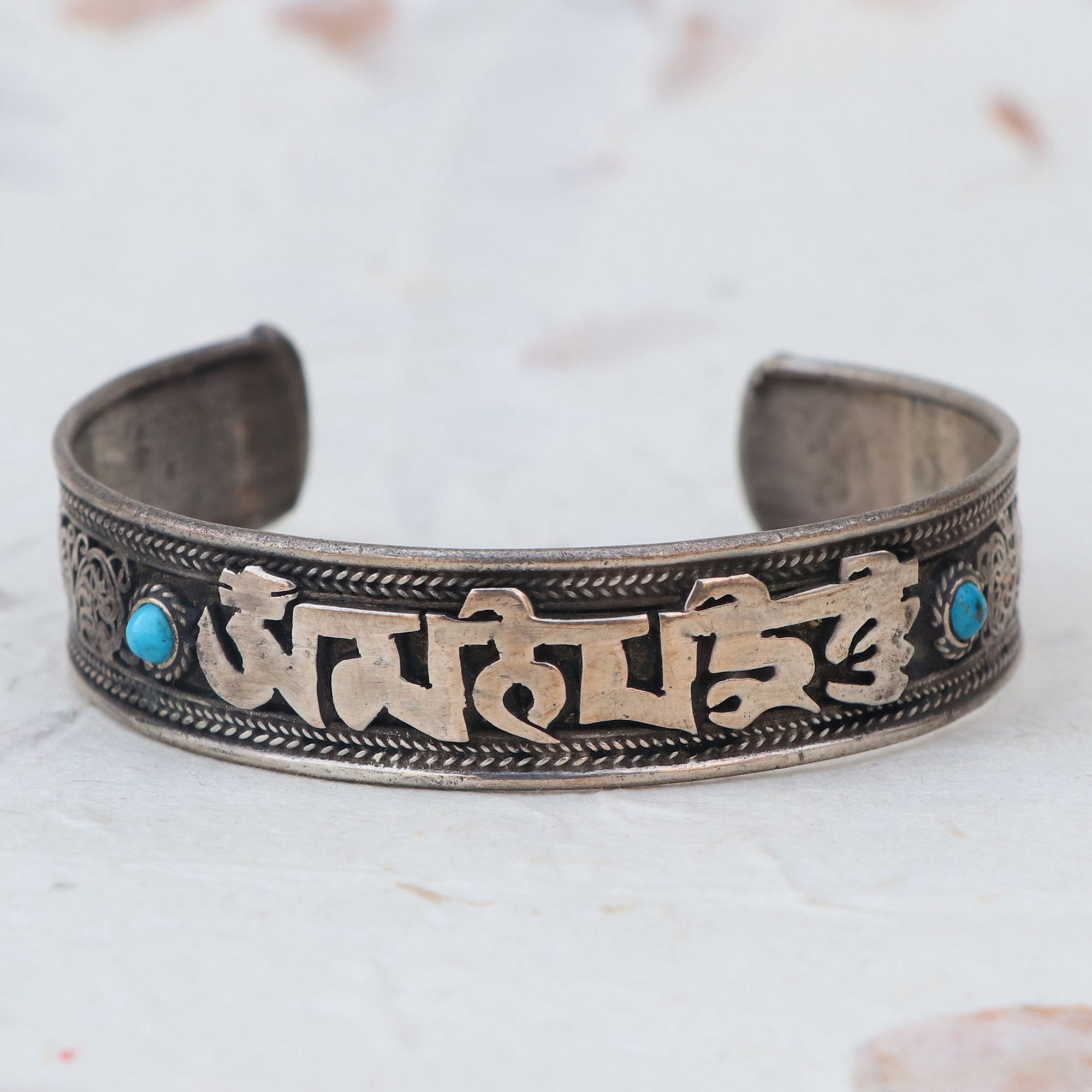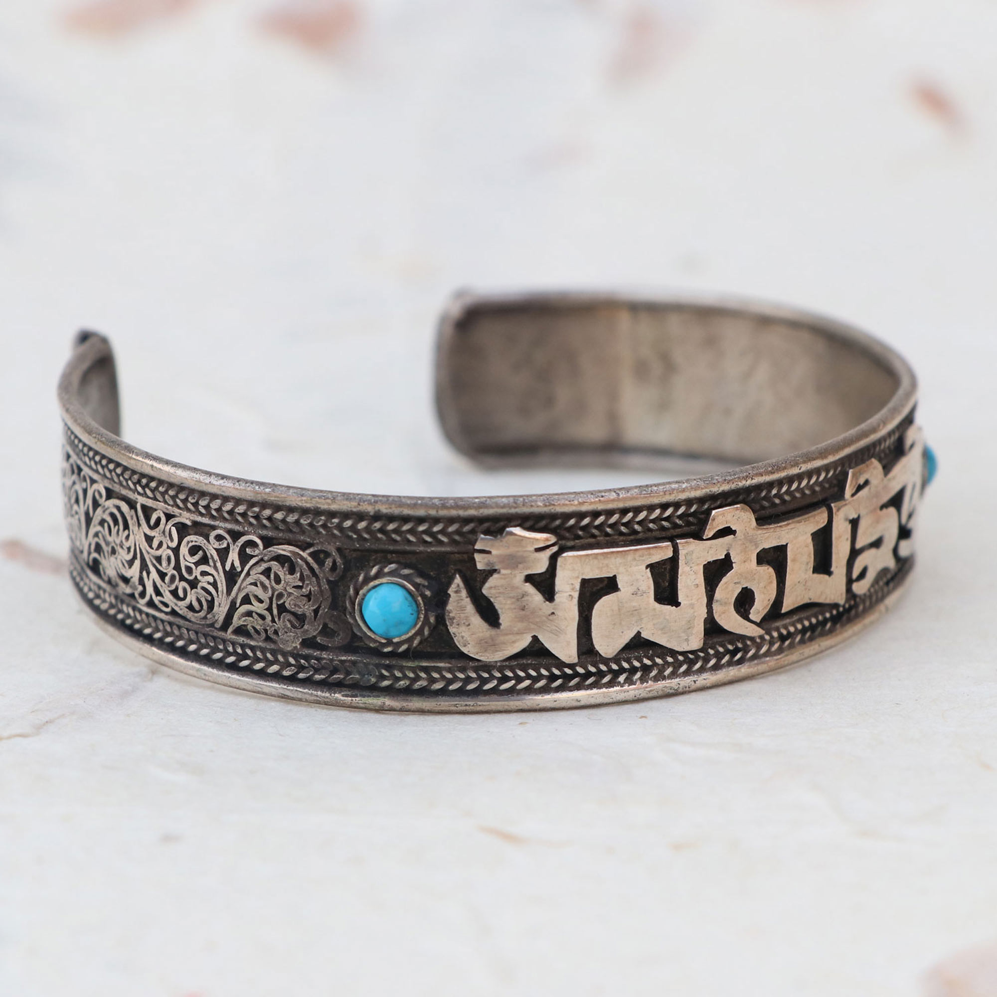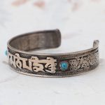 Tibetan Mantra Metal Bracelet with Turquoise Stone