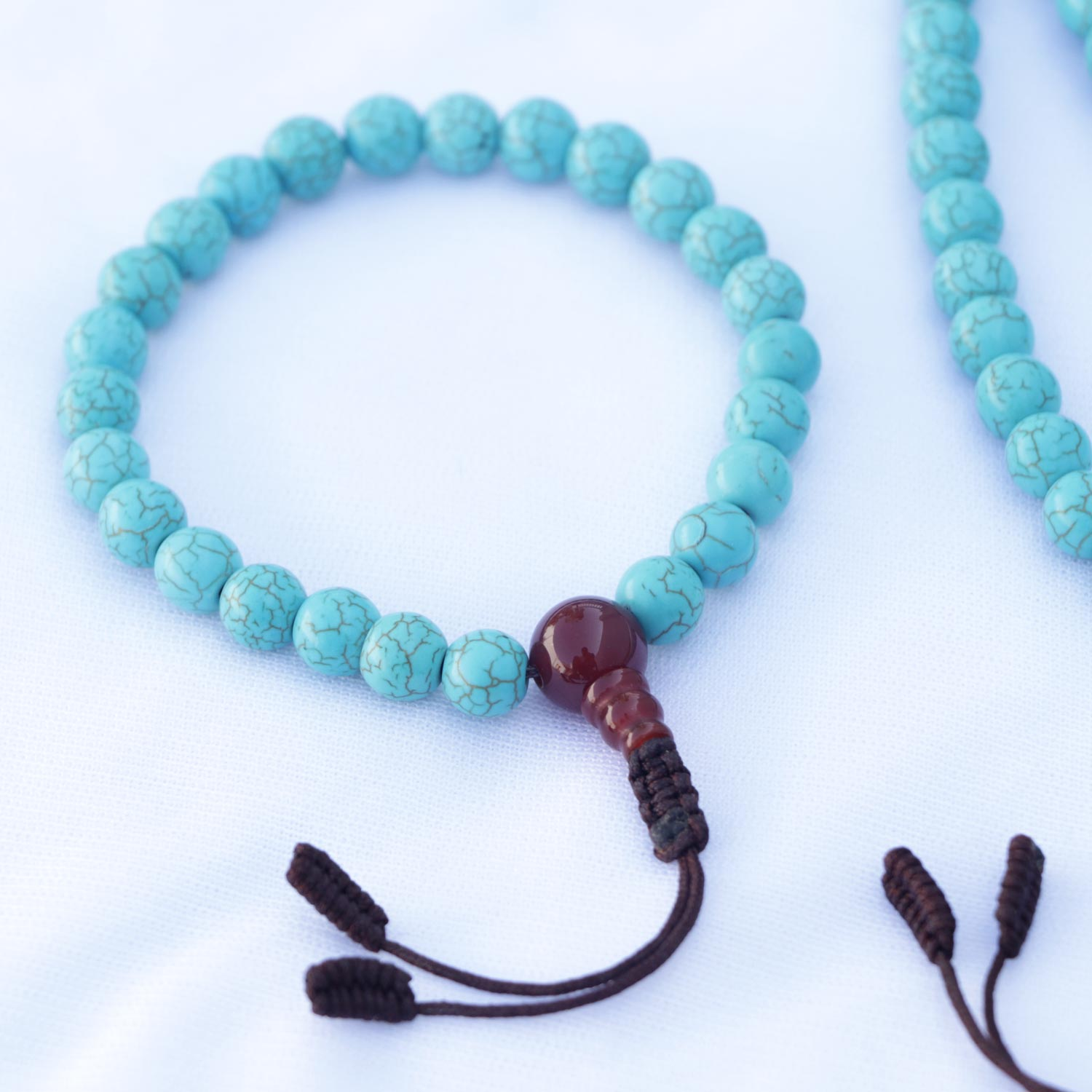- Materials: Turquoise, Carnelian Stone (Guru bead)