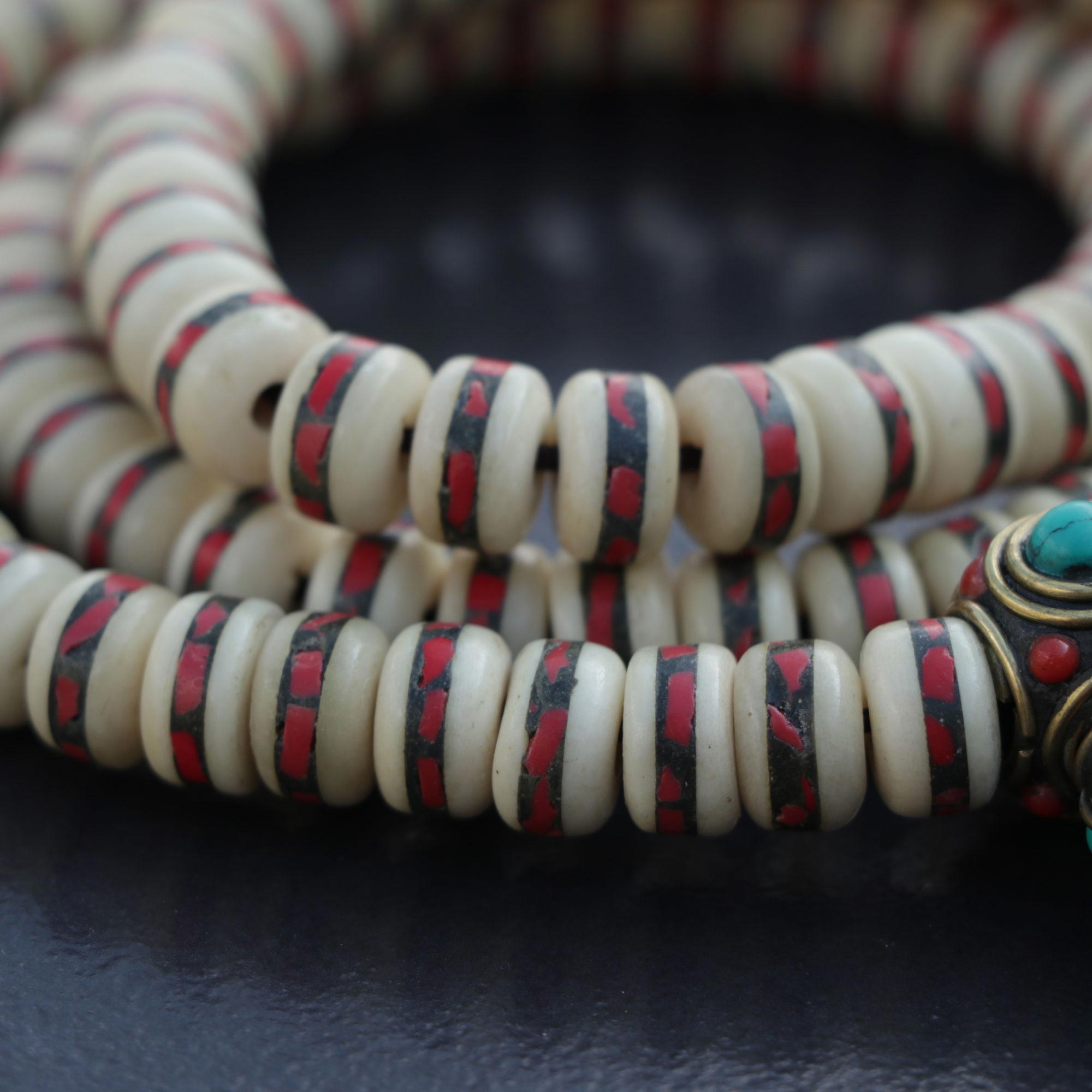 Yak Bone Japa Mala With Inlaid Brass Bead