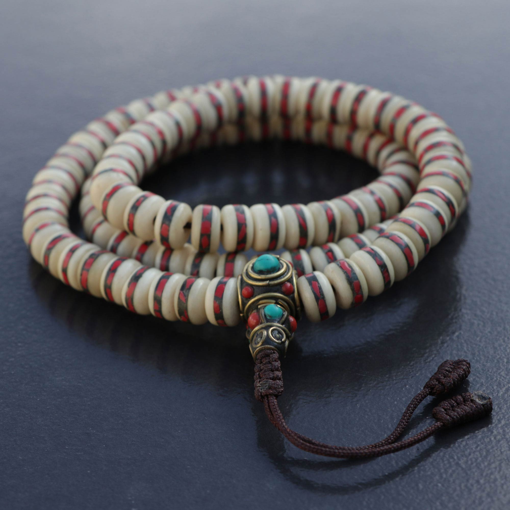 Discover the perfect Yak Bone Japa Mala With Inlaid Brass Bead from Lotus Mala (Lotus Handicrafts).