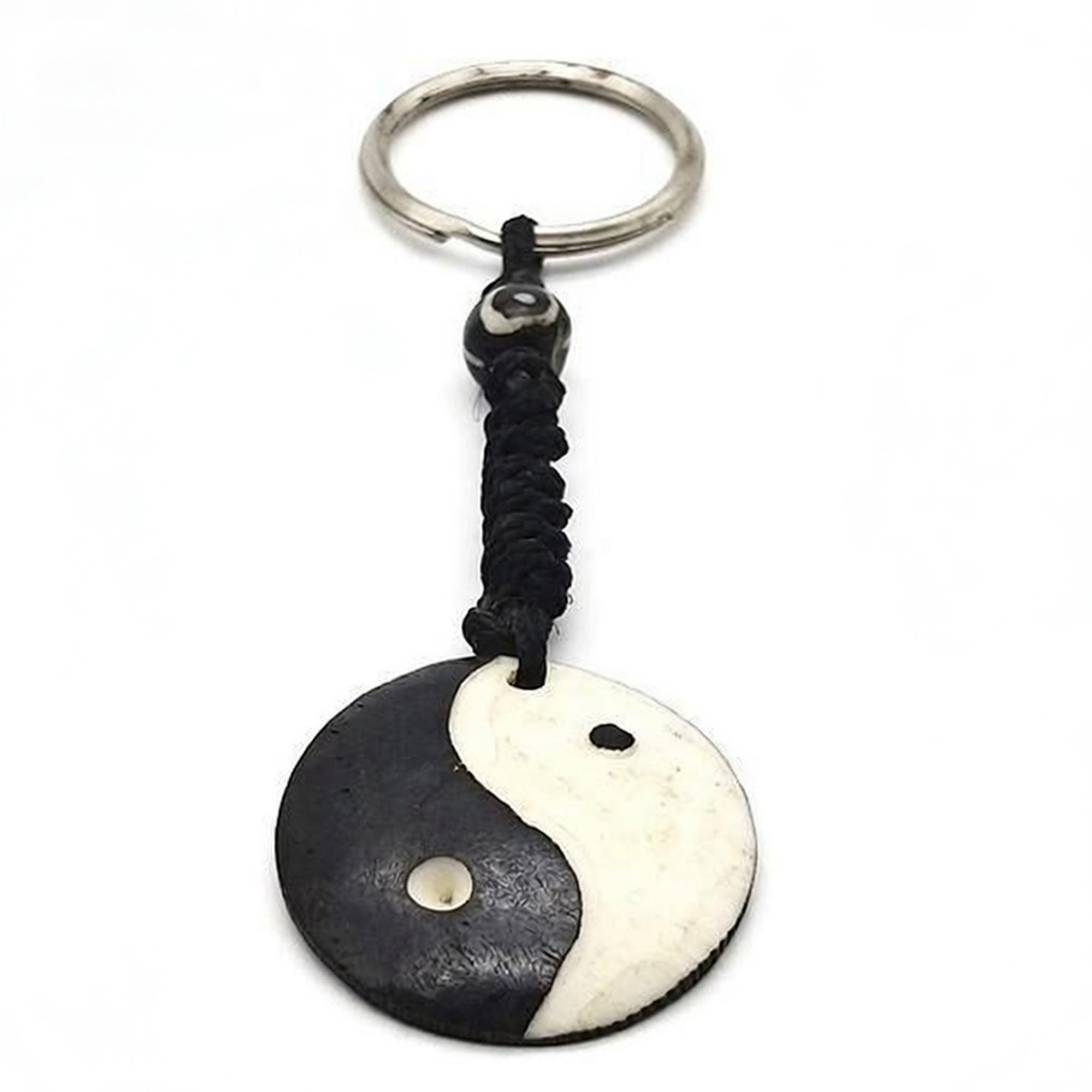 Elevate your spiritual accessories with the Yin & Yang Symbol Shaped Yak Bone Keyring from Lotus Mala.